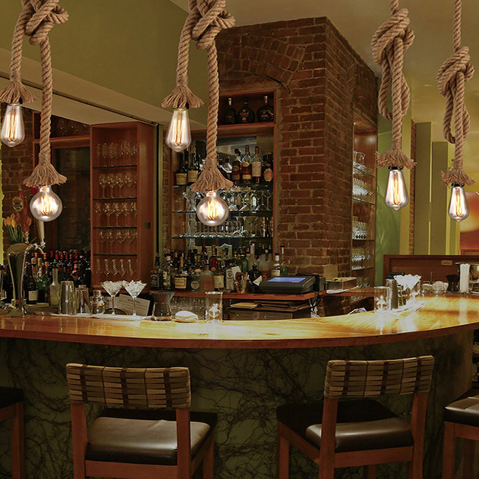 Pendente a sospenione con doppia corda e doppio portalampda attacco E27 supporta 2 lampadine led max 60W x 2, ideale per lampade led a filamento per creare effetti luce vintage e non solo compatibile con tutti i tipi di lampade con attacco E27. Adatto anche come lampada decorativa per camere, camerette, taverne dallo stile rustico, cantine ed in tutti quei posti dove si vule una fonte d'illuminazione minimal.