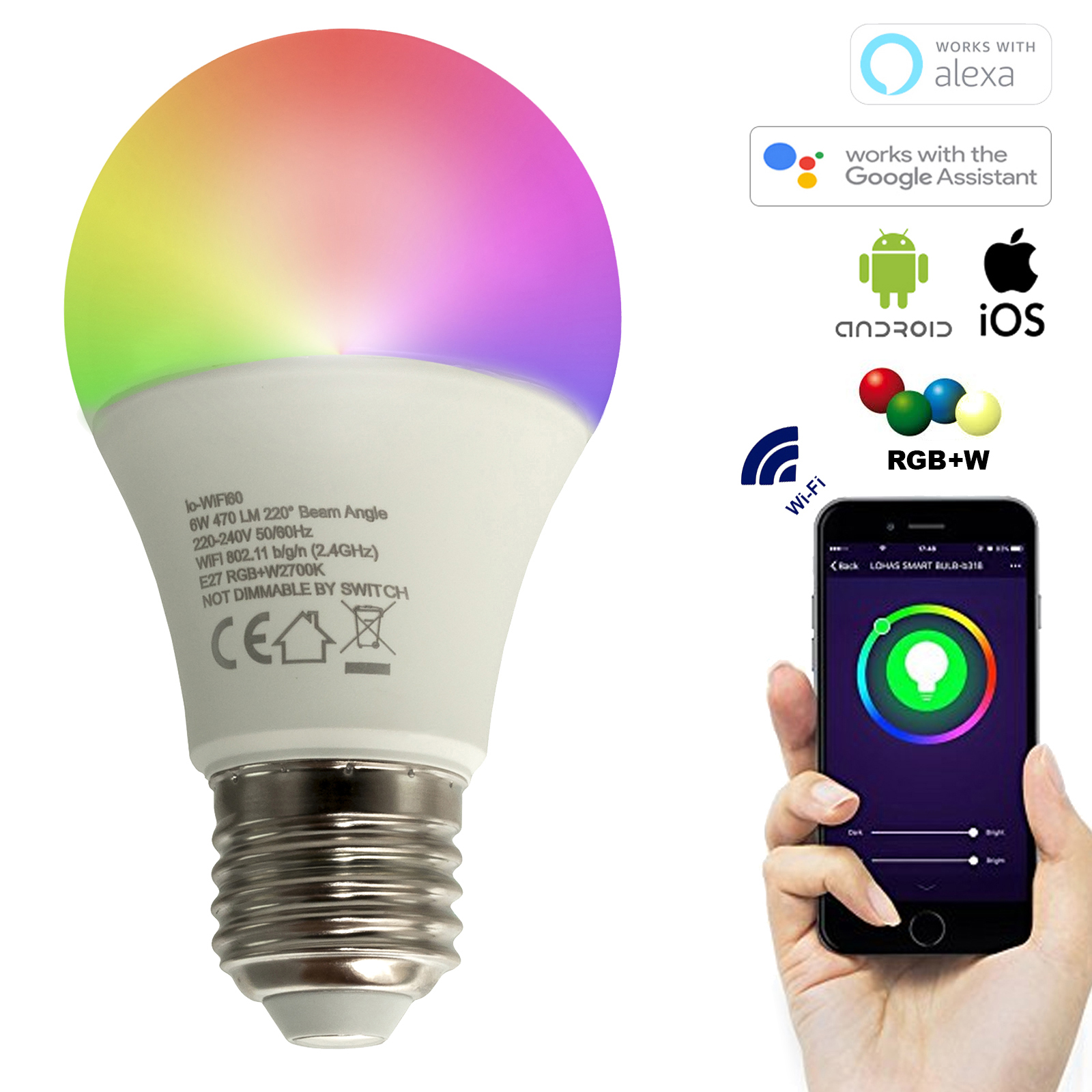 Lampada LED SMART RGB+W 2700K con tecnologia WIFi con le seguenti caratteristiche: