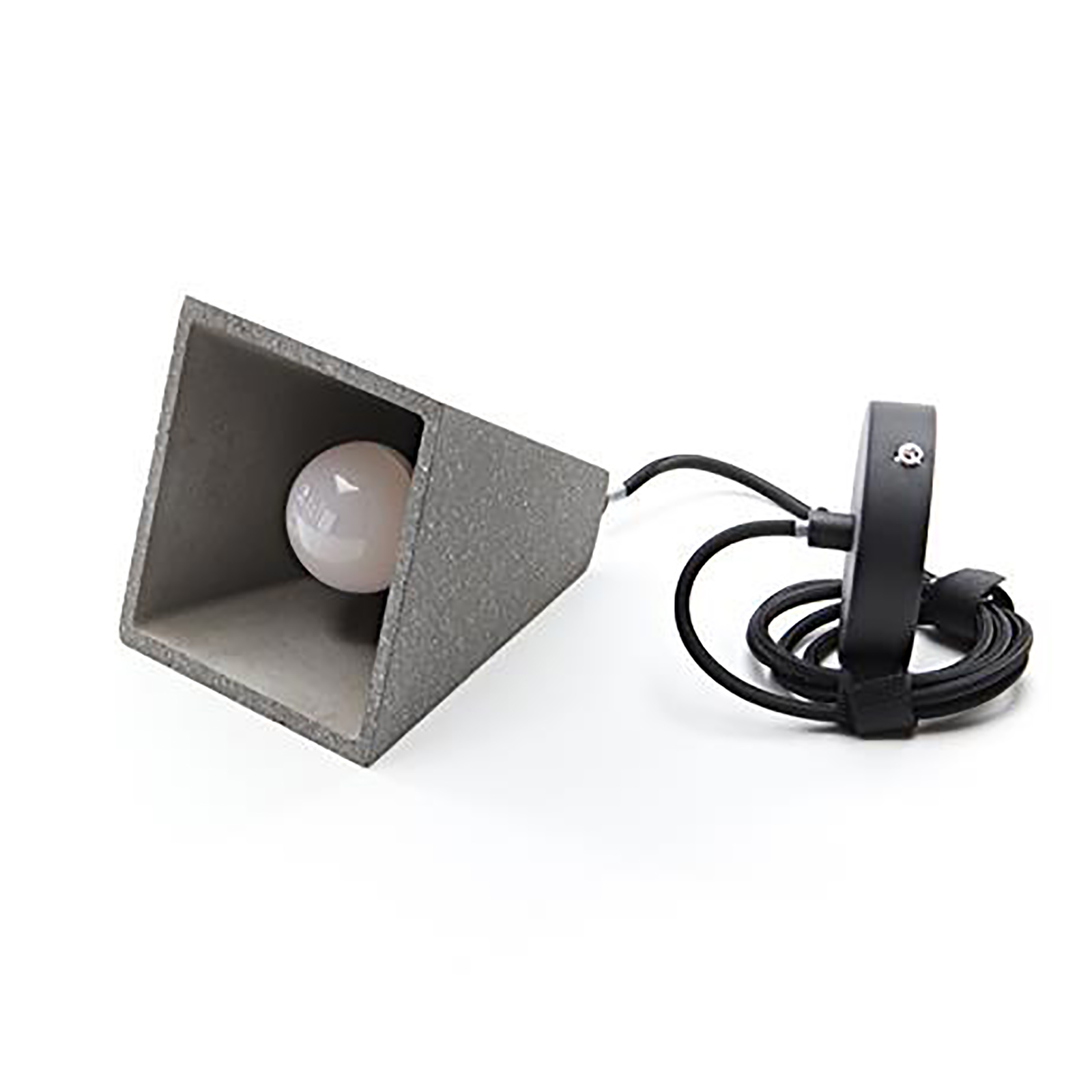 Il diffusore è realizzato in cemento ed è disponibile in 2 gradazioni di grigio: grigio chiaro e grigio scuro, la luce viene emessa verso il basso adatto per l'illumnazione di tavoli, tavolini, banconi, snack bar ecc... La lampada è intercambiabile in caso di rottura, questo consente una durata maggiore del prodotto a differenza di dispositivi con led integrato.
