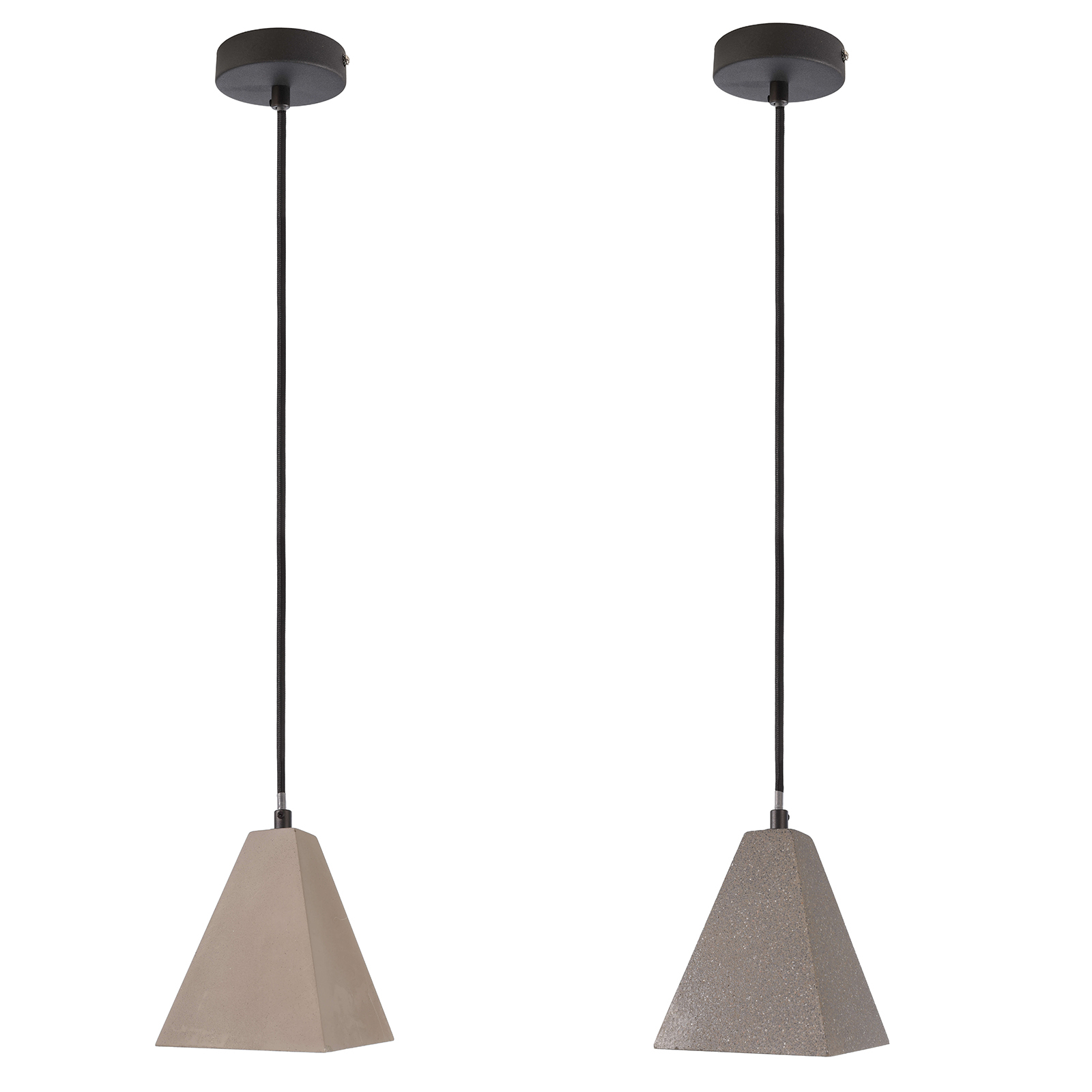 Lampadario pendente a forma di piramide dotato di portalampada con attacco E27 compatibile con lampade e lampadine led attacco E27 realizzato cemento dal design moderno. Perfetto da utilizzare in tutti gli ambienti moderni per dare uno stile particolare a pub, bar, pizzerie, ristoranti, taverne, all'interno di negozi, attività commerciali, per arredare ed illuminare i propri ambienti domestici come cucine, sale da pranzo, camerette.