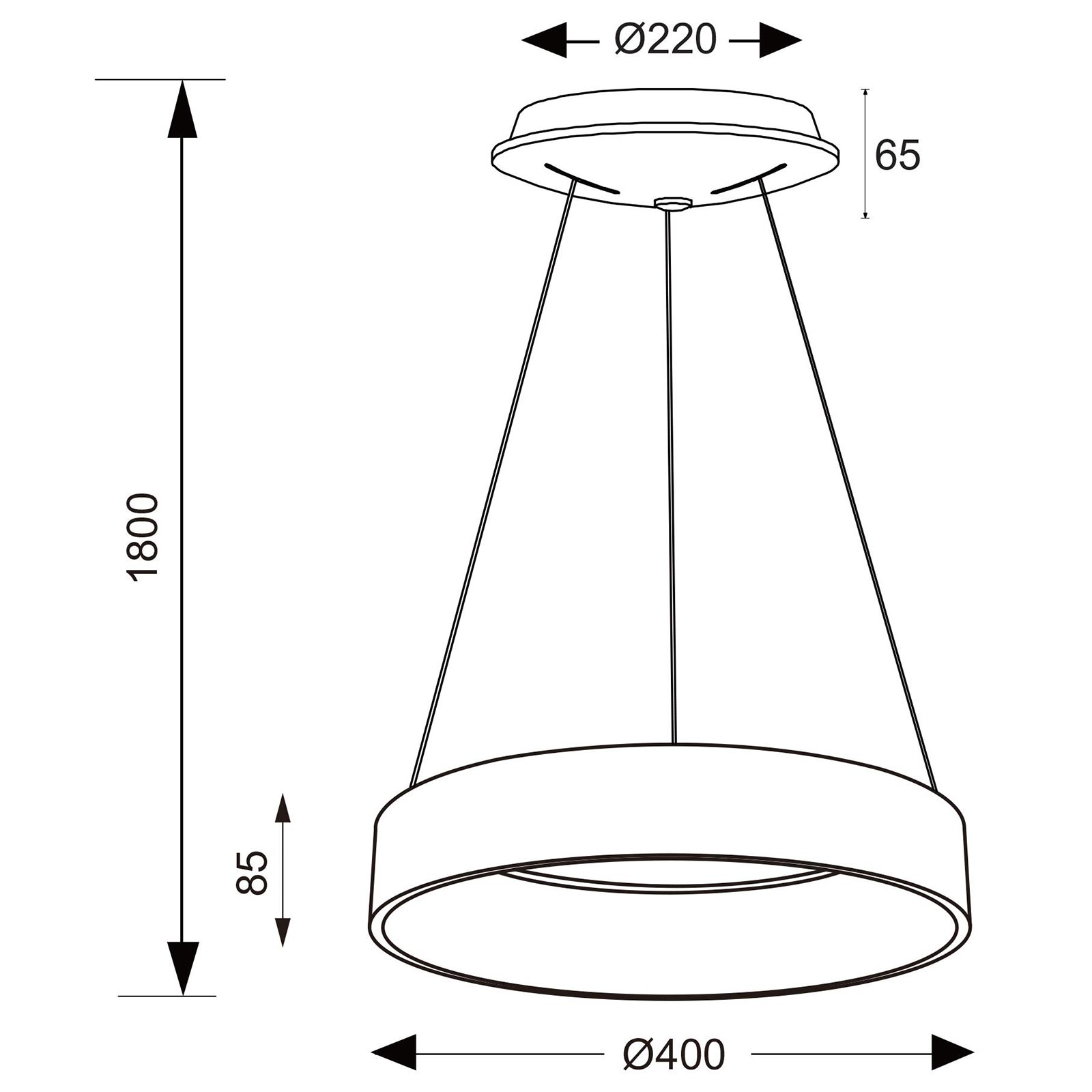Dotato di rosetta copri fili in metallo, si alimenta a 230V con un grado di protezione IP20 ideale per uso interno. La dimensione massima della sospensione è di 1.8 metri. Inoltre la sospensione è regolabile in altezza.