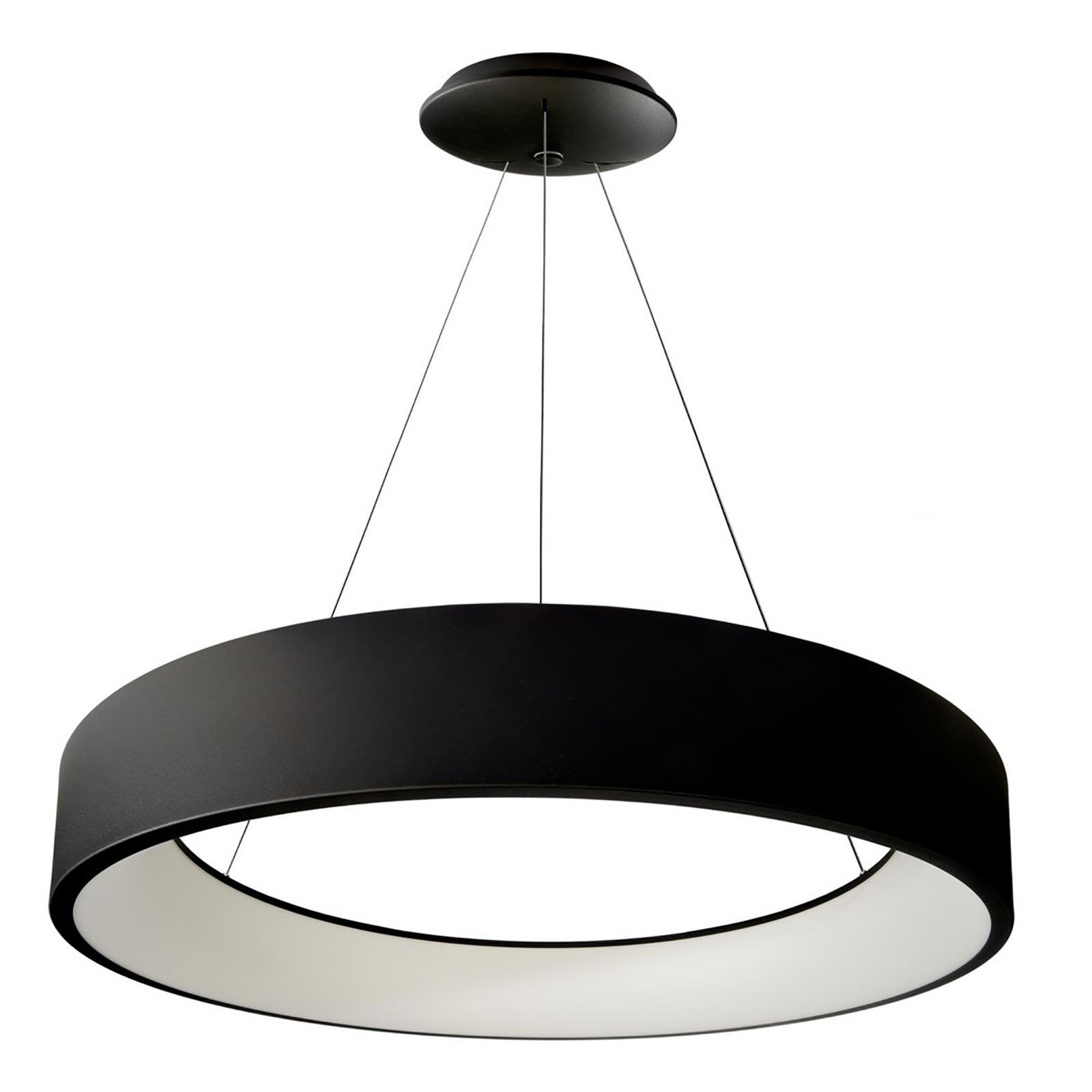 SCULPTORIS 600 Lampadario moderno dimmerabile a forma di cerchio dotato di 3 corde in acciaio per la sospensione, integra 240 led ad alta luminosità con potenza di 42W. Realizzato in alluminio disponibile in 2 colori bianco e nero ha il diffusore opaco ed è dotato di pratico switch che consente di scegliere la temperatura di luce desiderata: 3000K luce calda e 4000K luce naturale. Ideale per l'illuminazione interna di ambienti moderni come cucine, salotti, camere da letto, soggiorni, negozi, uffici, attività commerciali, negozi, studi medici. Ideale per dare un tocco di originalità ai propri ambienti interni grazie anche all'ampio angolo di luce che illumina gli ambienti in modo ottimale sia verso l'alto che verso il basso.