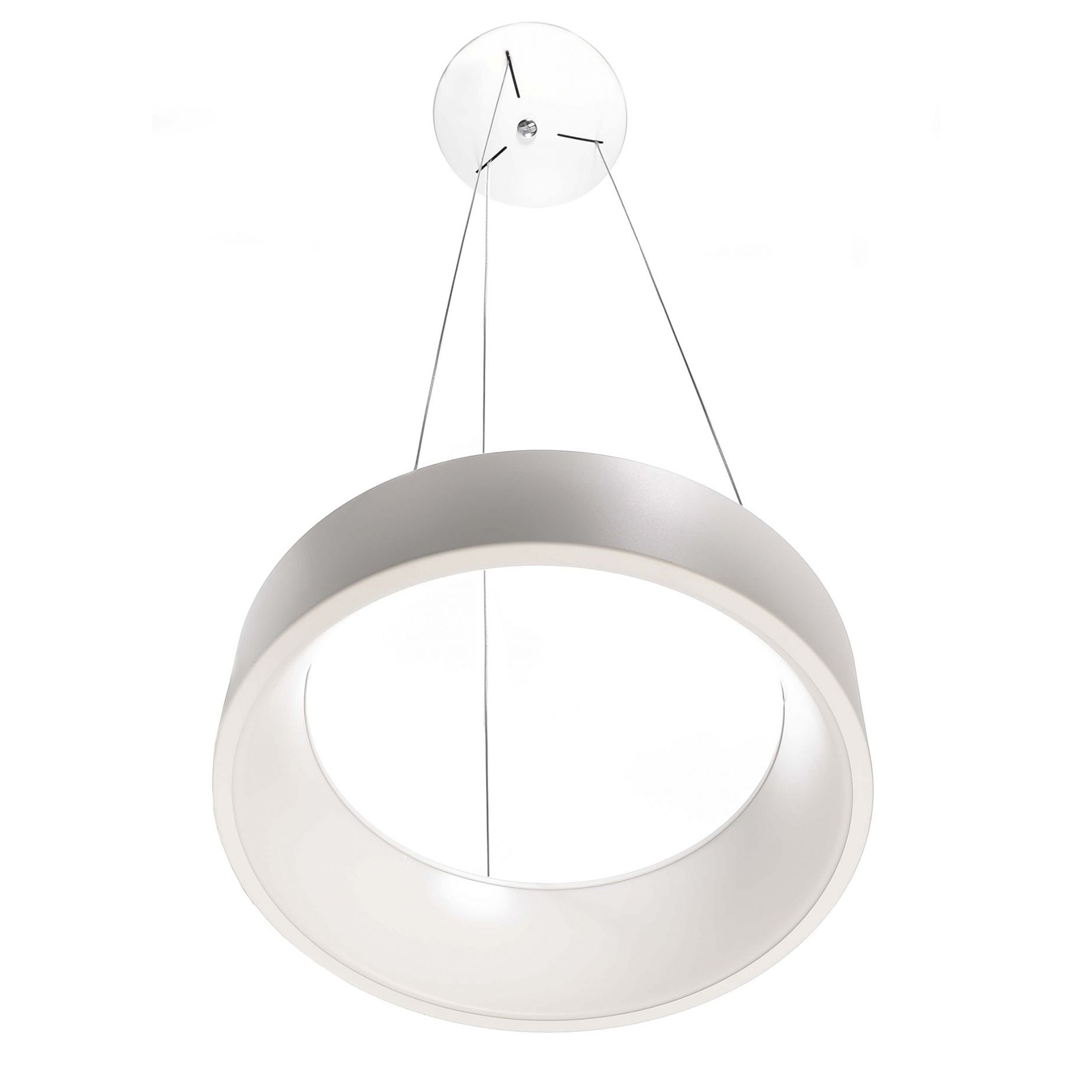 SCULPTORIS 800 Lampadario moderno dimmerabile a forma di cerchio dotato di 3 corde in acciaio per la sospensione, integra 384 led ad alta luminosità con potenza di 60W. Realizzato in alluminio disponibile in 2 colori bianco e nero ha il diffusore opaco ed è dotato di pratico switch che consente di scegliere la temperatura di luce desiderata: 3000K luce calda e 4000K luce naturale. Ideale per l'illuminazione interna di ambienti moderni come cucine, salotti, camere da letto, soggiorni, negozi, uffici, attività commerciali, negozi, studi medici. Ideale per dare un tocco di originalità ai propri ambienti interni grazie anche all'ampio angolo di luce che illumina gli ambienti in modo ottimale sia verso l'alto che verso il basso.