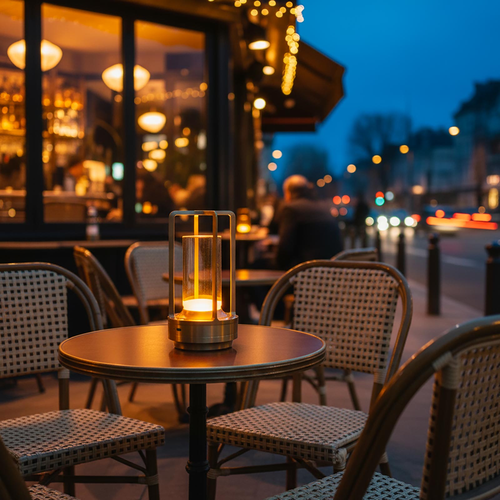 Lampada da tavolo ricaricabile senza fili, progettata per creare una piacevole luce d’atmosfera su tavoli e tavolini di bar, pub, ristoranti, pizzerie o in ambienti domestici come salotti, camere da letto e uffici.