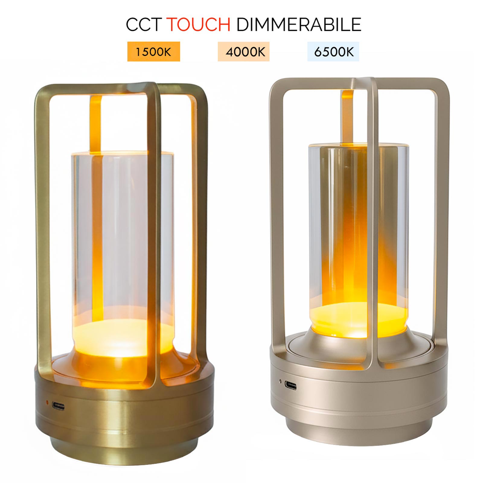 Disponibile in due finiture, oro e argento, si integra facilmente in contesti moderni o classici. Le dimensioni compatte di Ø 90 mm x altezza 180 mm la rendono adatta come luce atmosfera per tavoli o lampada per comodino e scrivania. Grazie alla combinazione di materiali di qualità, il controllo touch e l'autonomia prolungata, rappresenta una soluzione pratica per l’illuminazione decorativa di ambienti privati e professionali.
