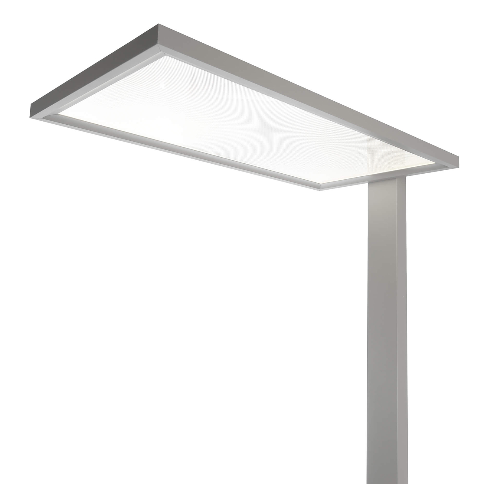 Elegante e funzionale piantana modera da ufficio dotata di sensore sensore touch realizzata in alluminio di colore grigio ideale per l'illuminazione interna in ambito lavorativo di uffici, studi medici, studi commerciali, utile per ottenere un confort luminoso nei propri ambienti di lavoro. Dotata di diffusore trasparente integra LED ad alta efficienza energetica con una potenza di 55W.