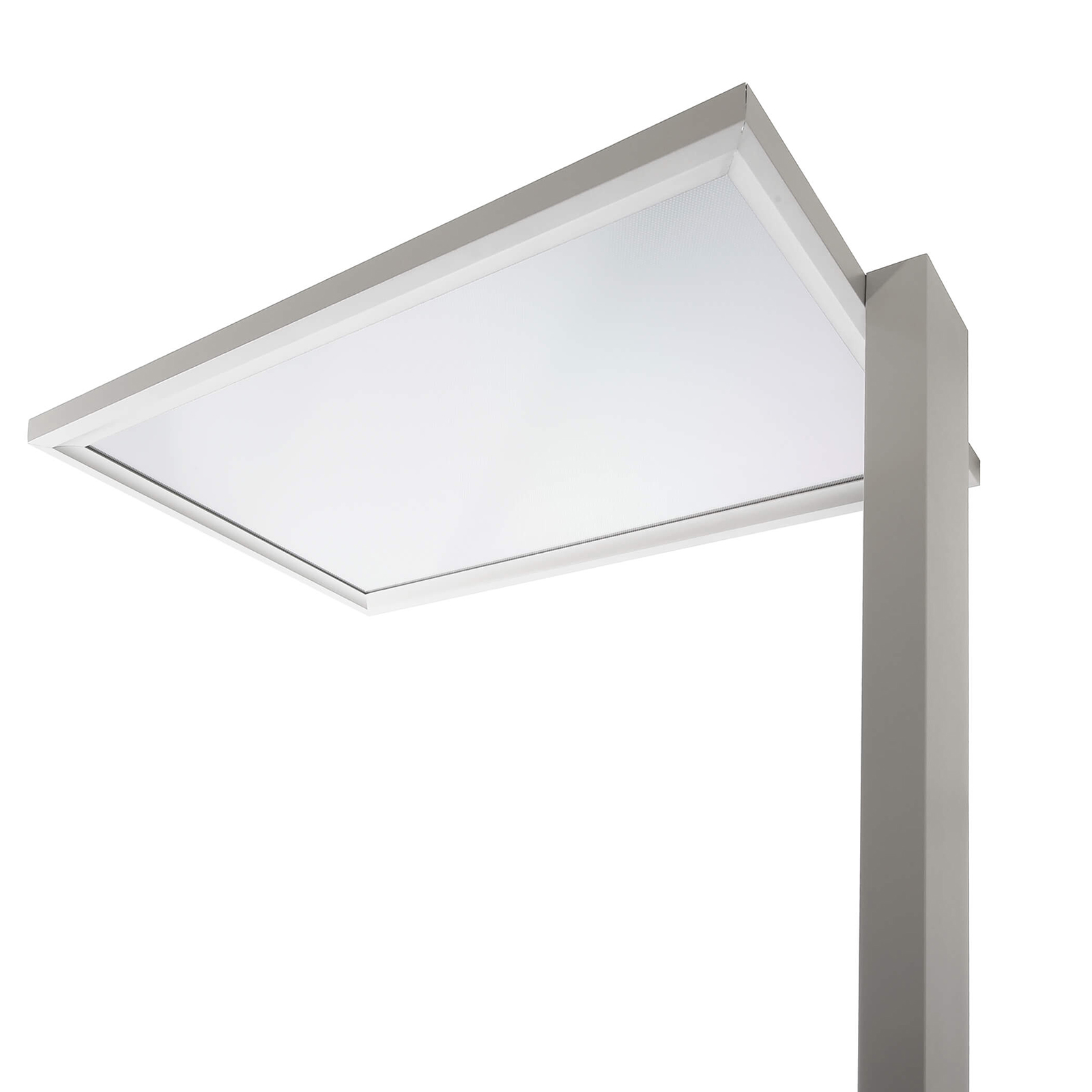 Elegante e funzionale piantana modera da ufficio dotata di sensore sensore touch realizzata in alluminio di colore grigio ideale per l'illuminazione interna in ambito lavorativo di uffici, studi medici, studi commerciali, utile per ottenere un confort luminoso nei propri ambienti di lavoro. Dotata di diffusore trasparente integra LED ad alta efficienza energetica con una potenza di 55W.