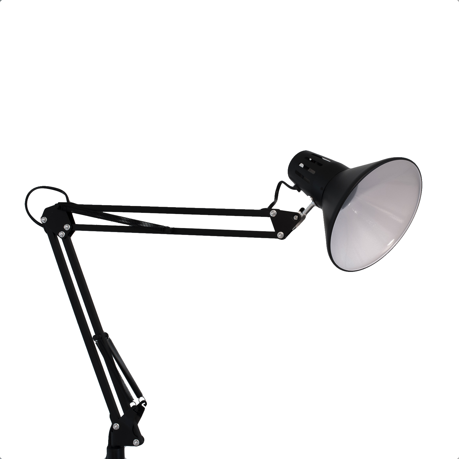 Classica lampada da terra con braccio regolabile dotata di diffusore con portalampada E27 compatibile con la maggior parte di lampade e lampadine LED con attacco E27. Adatta in abienti interni per l'illuminazione di scrivanie di uffici, scrivanie di camerette, studi medici, laboratori tecnici, come lampada per la lettura ed in tutti quei posti dove si vuole una fonte luminosa versatile.
