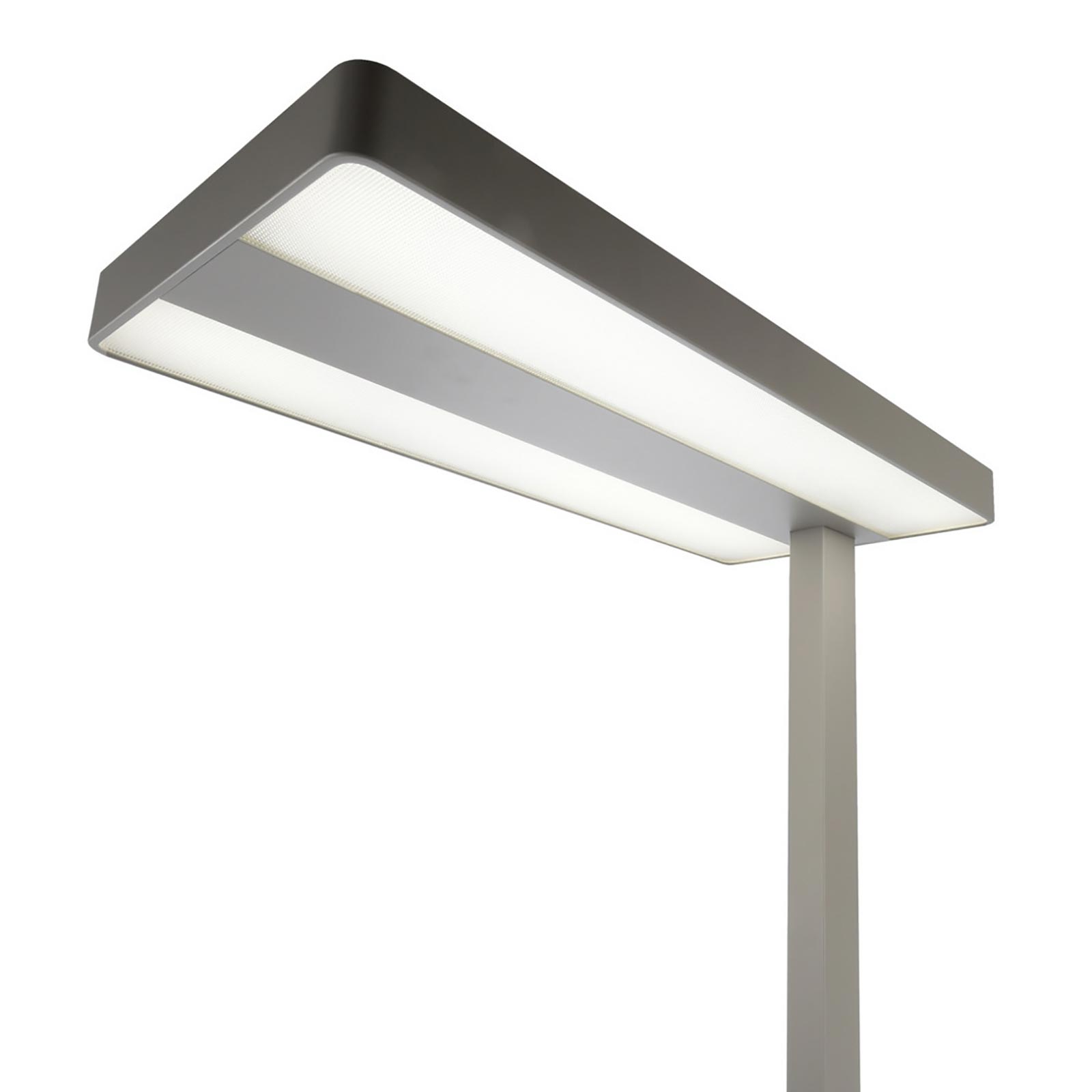 OFFICE TWO Elegante piantana modera realizzata in alluminio dal design moderno dotata di doppio diffusore utile l'illuminazione di design di uffici, studi medici, studi commerciali, per dare eleganza ed illuminare in modo professionale gli ambienti di lavoro. La struttua in alluminio di colore silver si integra facilmente in quasiasi contesto, mentre i LED integrati di ultima generazione hanno una potenza di 80W ed un basso consumo energetico.