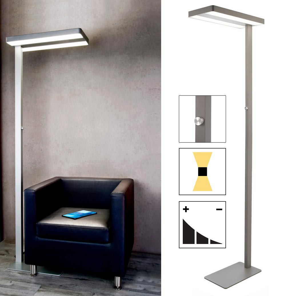 Grazie al doppio diffusore questa lampada emette sia luce indiretta verso l'alto sia luce diretta verso il basso, questo consente un'illuminazione ottimale dell'ambiente. Facile da installare non richiede installazioni ma si alimenta direttamente alla presa elettrica a 230V tramite il cavo in dotazione. La piantana è disponibile con temperatura luce 4000K luce naturale ed un'intensità luminosa di 8300 lumen.
