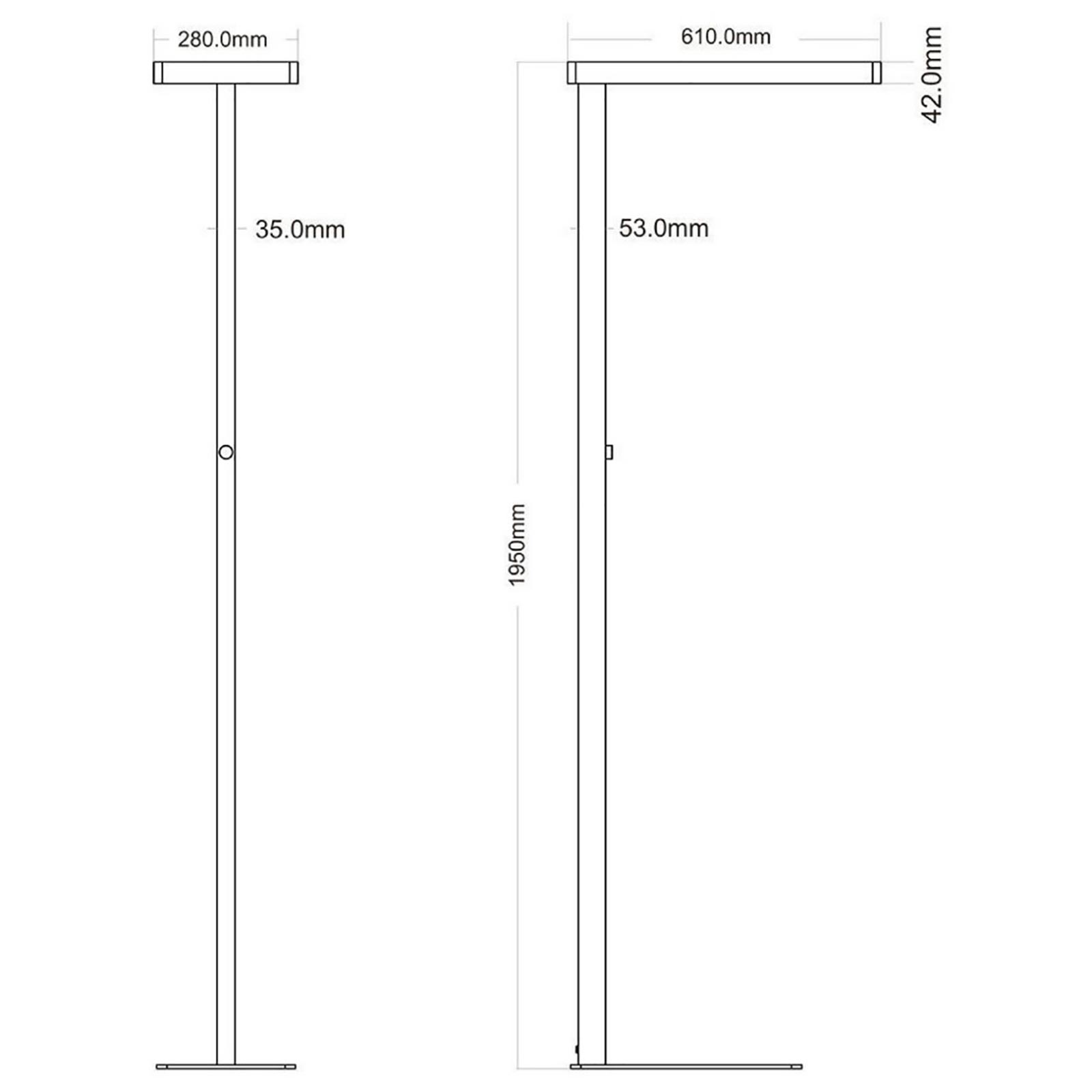 Grazie al doppio diffusore questa lampada emette sia luce indiretta verso l'alto sia luce diretta verso il basso, questo consente un'illuminazione ottimale dell'ambiente. Facile da installare non richiede installazioni ma si alimenta direttamente alla presa elettrica a 230V tramite il cavo in dotazione. La piantana è disponibile con temperatura luce 4000K luce naturale ed un'intensità luminosa di 8300 lumen.