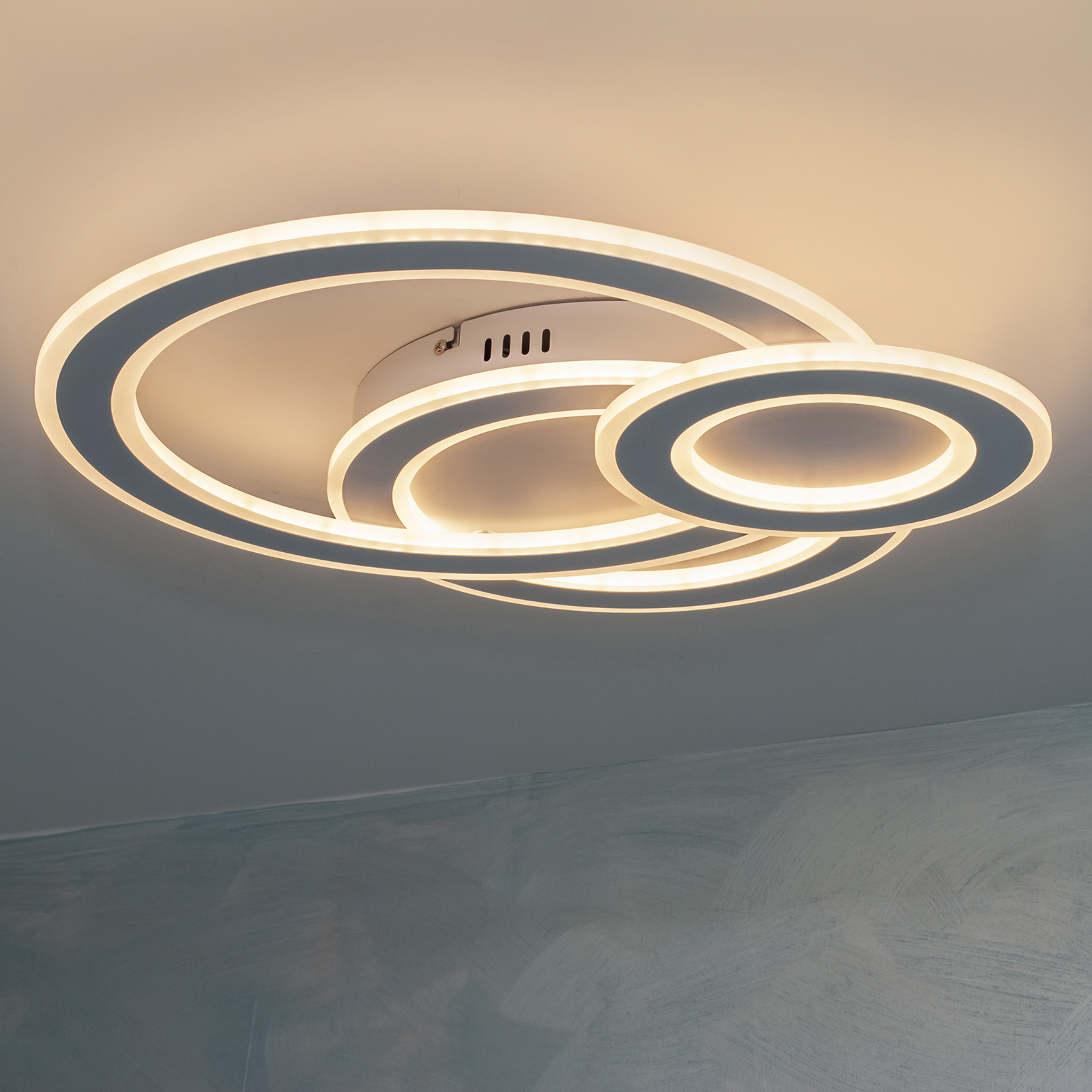 Elegante e particolare plafoniera multifunzione dal design moderno dotata di LED integrati di ultima generazione con potenza 105W da fissare a soffitto ideale per decorare ed illuminare ambienti interni come camere da letto, cucine moderne, saloni, salotti, sale da pranzo, negozi, uffici hall di alberghi ed in tutti quei posti dove is vuole installare un prodotto unico e versatile.