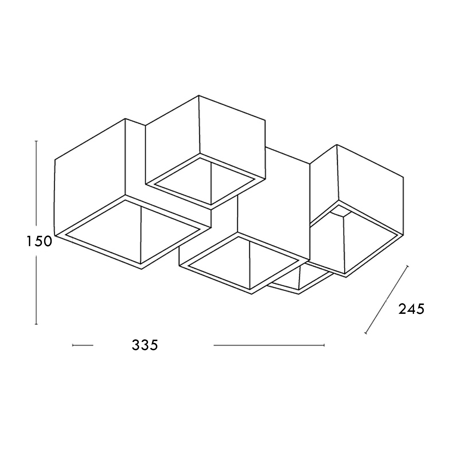 La lampada da soffitto è provvista di cinque portalampade attacco GU10 per lampade a LED, le lampade sono intercambiabili quindi in caso di rottura basta sostituirla a differenza di prodotti con LED integrati. Si alimenta direttamente alla rete elettrica a 230V e non necessita di trasformatore, ha un grado di protezione IP20 (quindi adatto solo ad ambiente interni con assenza di umidità).