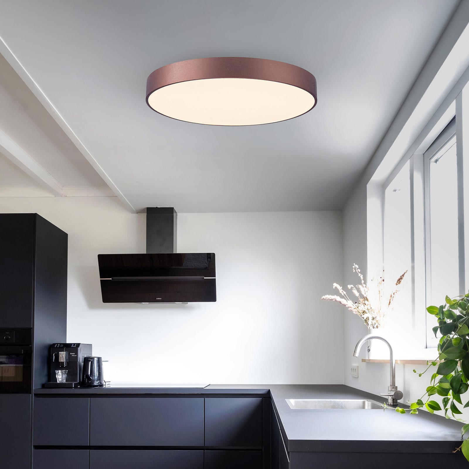 La lampada ha un design moderno e funzionale i LED ad alta efficienza energetica consentono un'ottima luminosità con un consumo energetico ridotto. Questa plafoniera illumina e non invade con la sua presenza l'arredamento che lo circonda. La luce emessa è diffusa ed omogenea, morbida e piatta grazie al grande diffusore in alluminio opaco che illumina gli ambienti in modo uniforme e piacevole senza abbagliare la vista.