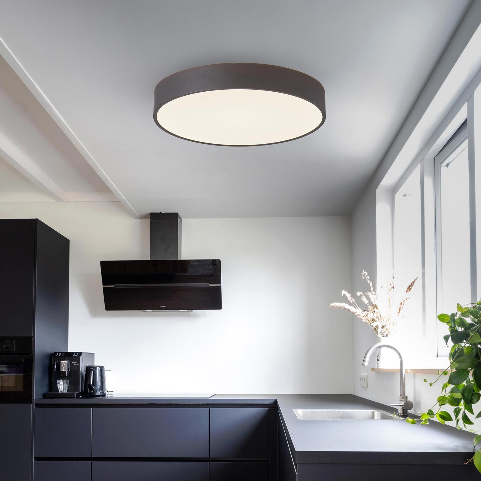La lampada ha un design moderno e funzionale i LED ad alta efficienza energetica consentono un'ottima luminosità con un consumo energetico ridotto. Questa plafoniera illumina e non invade con la sua presenza l'arredamento che lo circonda. La luce emessa è diffusa ed omogenea, morbida e piatta grazie al grande diffusore in alluminio opaco che illumina gli ambienti in modo uniforme e piacevole senza abbagliare la vista.