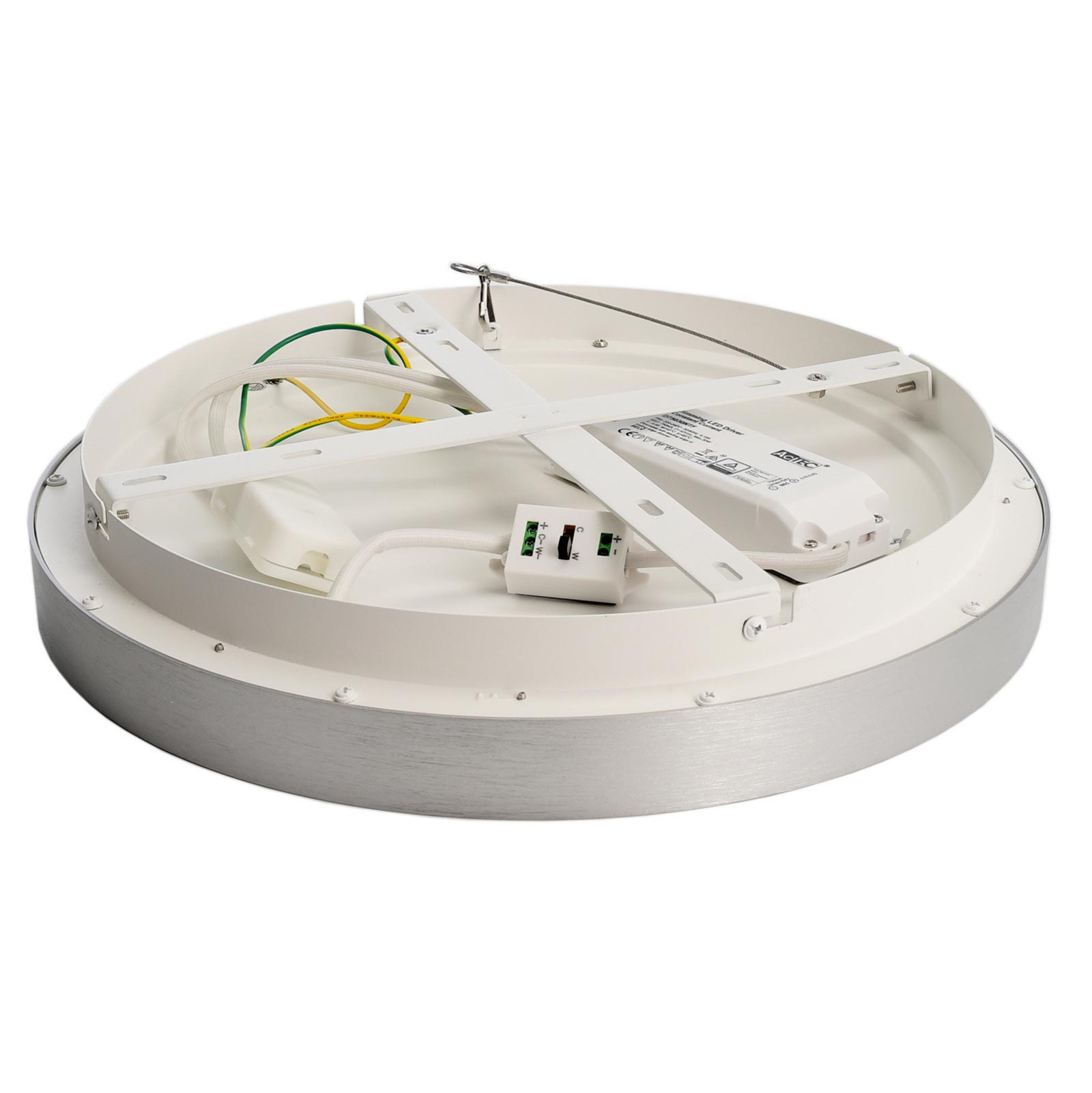 Disponibile in 4 colorazioni: bianca, silver, marrone e nera per adattarsi meglio a tutti gli ambienti interni. Viene fornita completa di LED driver per il collegamento alla rete elettrica a 230V - Inoltre dispone di un interruttore che consente di variare la temperatura di luce da 3000K luce calda a 4000K luce naturale. I LED integrati hanno un'ottima resa luminosa con un'intensità di circa 2200 lumen ed un consumo energetico ridotto rispetto alle vecchie lampade alogene.