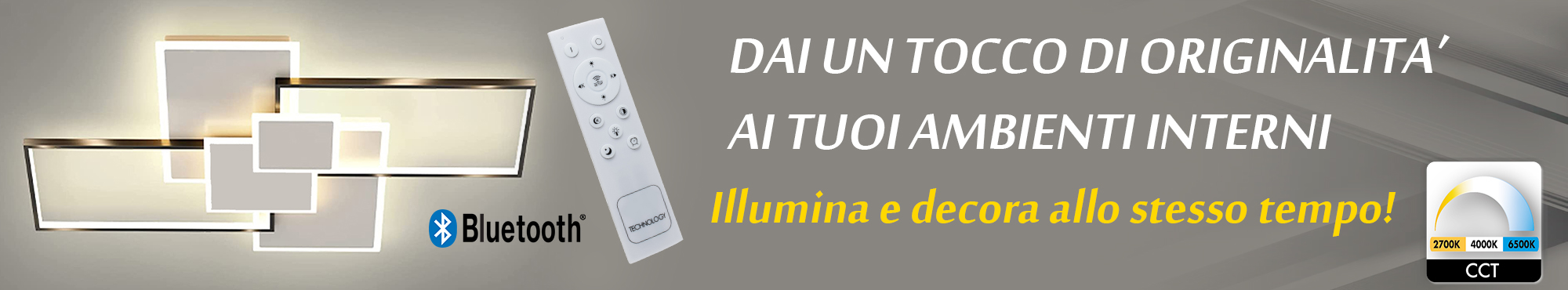 Dotata di telecomando, grazie al quale può essere dimmerata l'intensità della luce ed anche possibile scegliere la tonalità di luce desiderata da luce calda 3000k fino ad una luce bianca fredda di 6500k. Inoltre è possibile gestire le varie funzioni anche tramite BLUETOOTH, scaricando l'APP sul proprio smartphone possiamo spegnerla o accederla, cambiare tonalità della luce, aumentare o diminuire l'intensità della luce oppure impostare un timer di auto spegnimento. Ed ancora è possibile cambiare la tonalità di luce spegnendo ed accendendo l'interruttore. (Funzione 3 step)