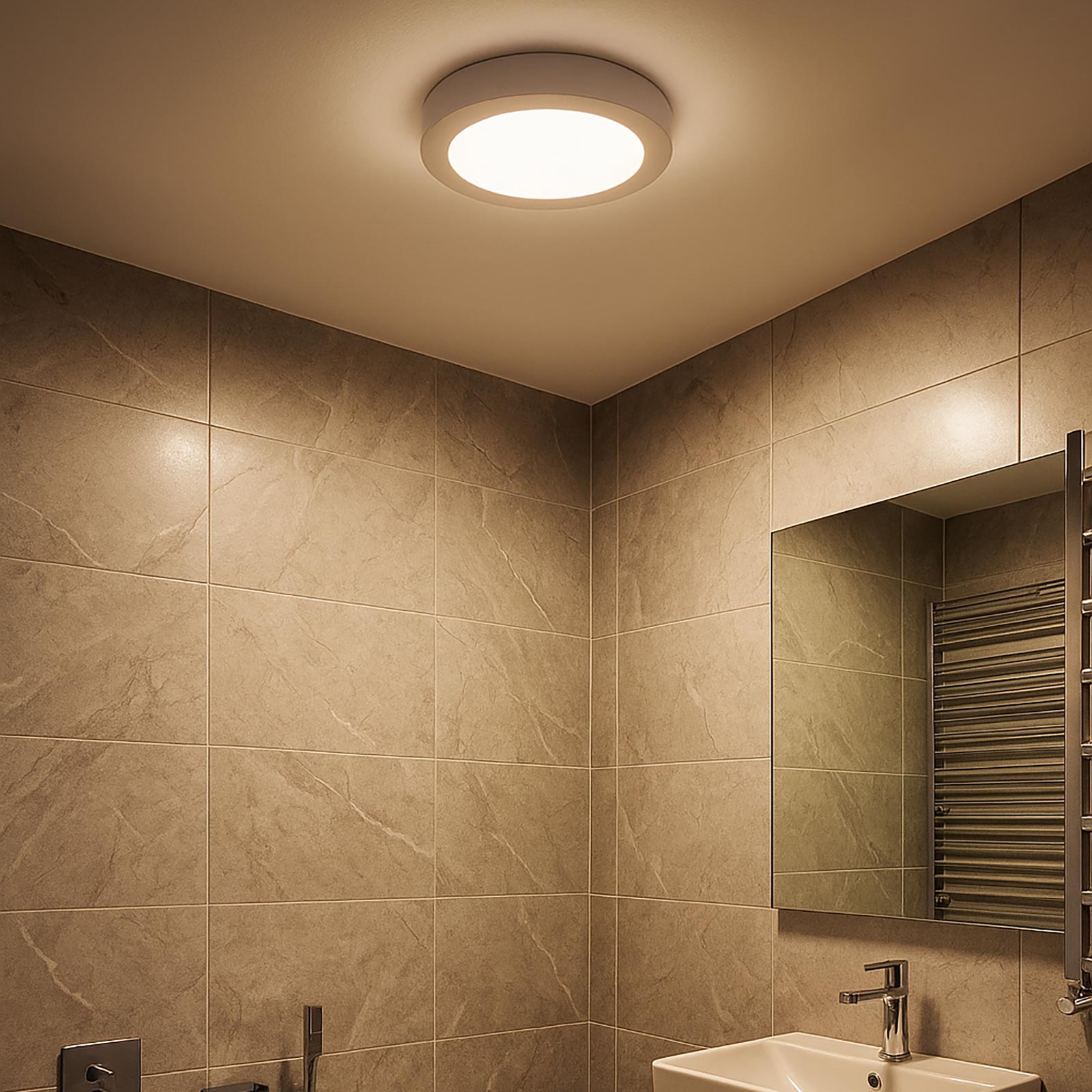 Compatibile con impianti elettrici standard 230V, include driver integrato per un’installazione diretta a soffitto o a parete.