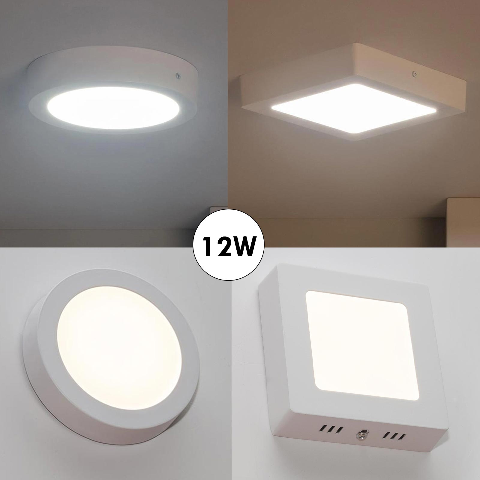 Plafoniera LED 12W lampada soffitto parete muro resa 130W luce ripostiglio bagno garage tonda quadrata
