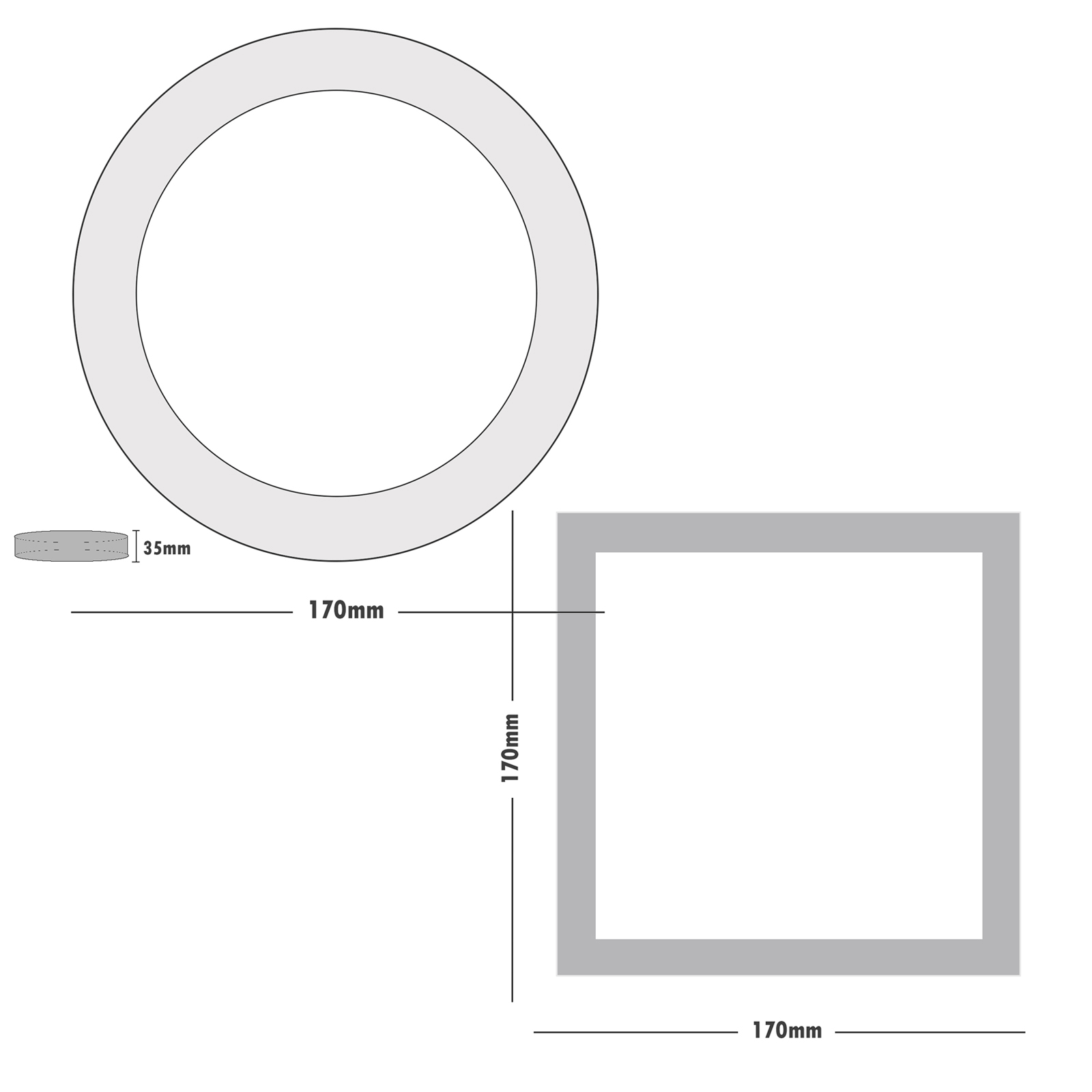 Disponibile in due forme – tonda (Ø 170 x 35 mm) e quadrata (170 x 170 x 35 mm) – questa lampada LED garantisce una luce diffusa con angolo di emissione di 120 gradi.