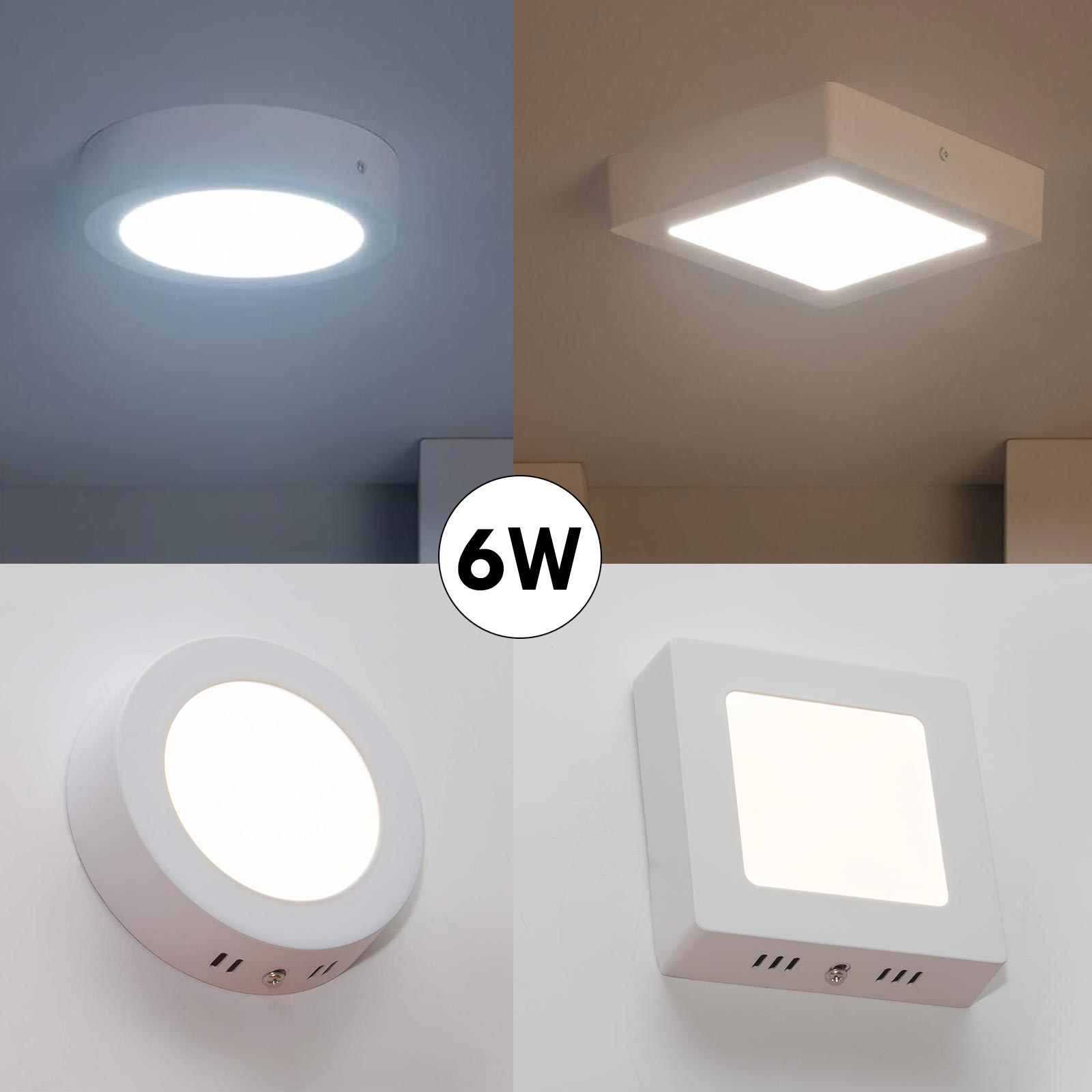 Plafoniera LED 6W lampada moderna bianca luce soffitto parete muro ripostiglio bagno garage tonda quadrata