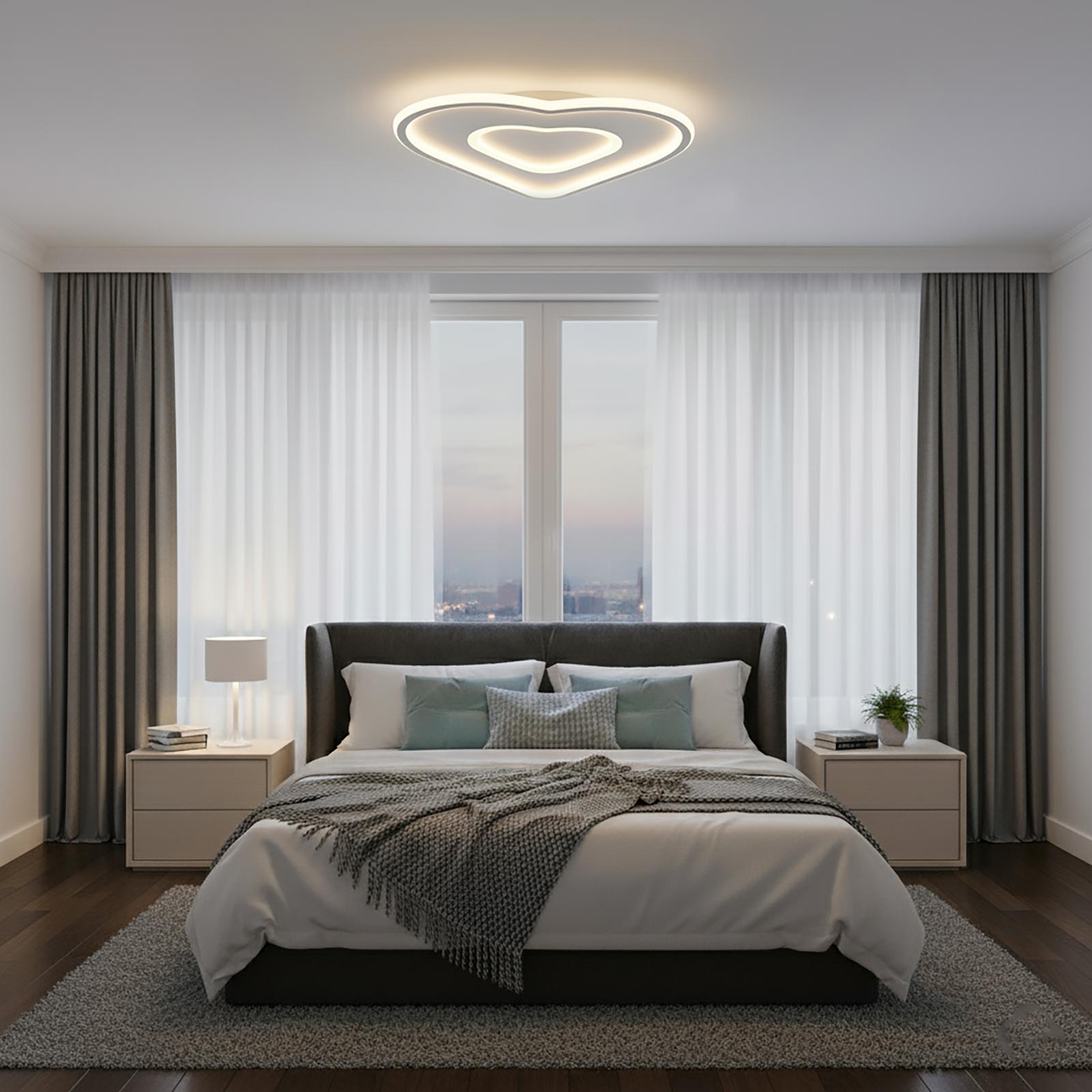 Plafoniera moderna a cuore con doppio LED integrato da 54W, progettata per offrire una luce versatile e uniforme in ogni ambiente domestico. Realizzata in alluminio bianco con diffusori in PVC e acrilico, garantisce un’illuminazione omogenea senza abbagliare, ideale per camerette, camere da letto, cucine o soggiorni dal design contemporaneo.