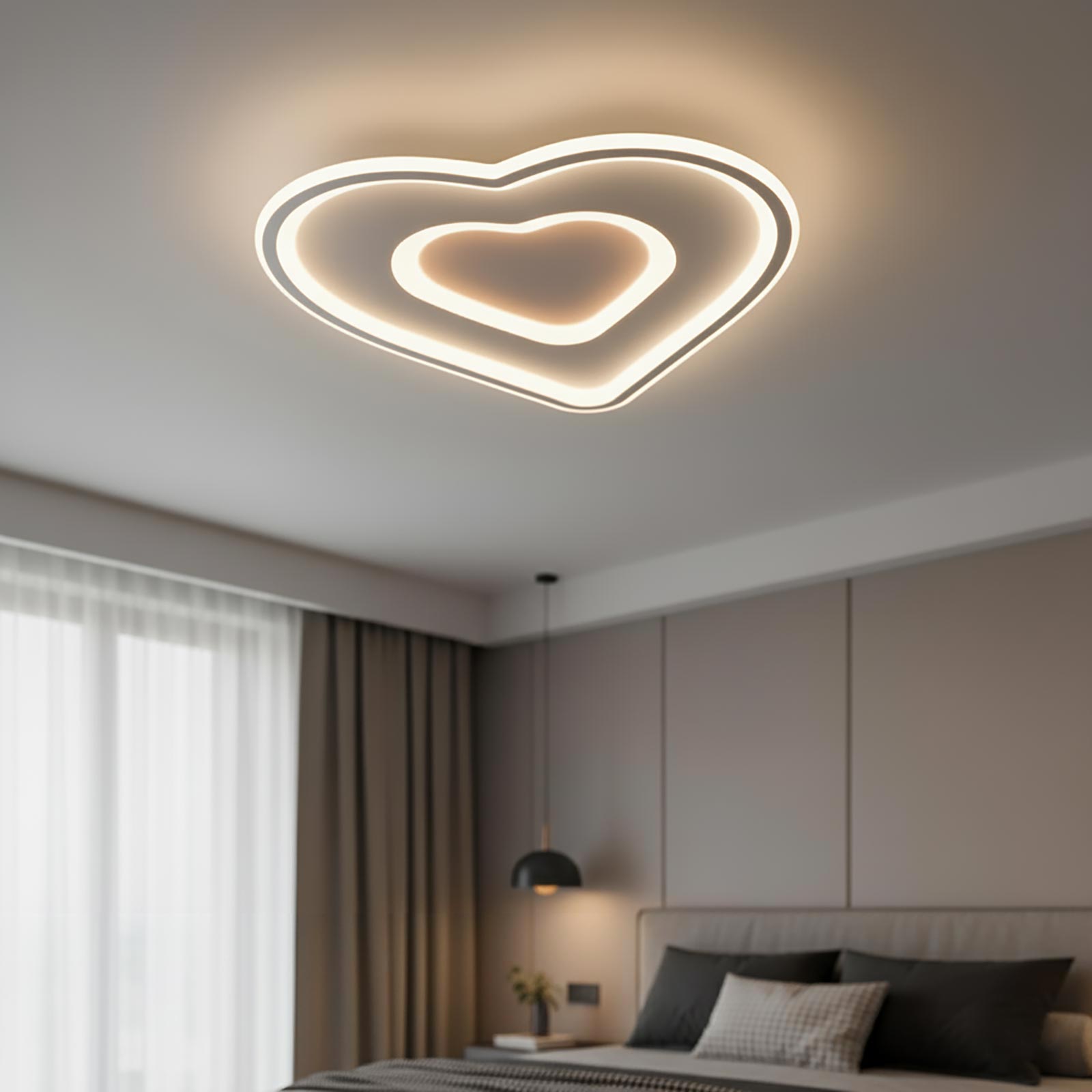 Plafoniera moderna a cuore con doppio LED integrato da 54W, progettata per offrire una luce versatile e uniforme in ogni ambiente domestico. Realizzata in alluminio bianco con diffusori in PVC e acrilico, garantisce un’illuminazione omogenea senza abbagliare, ideale per camerette, camere da letto, cucine o soggiorni dal design contemporaneo.