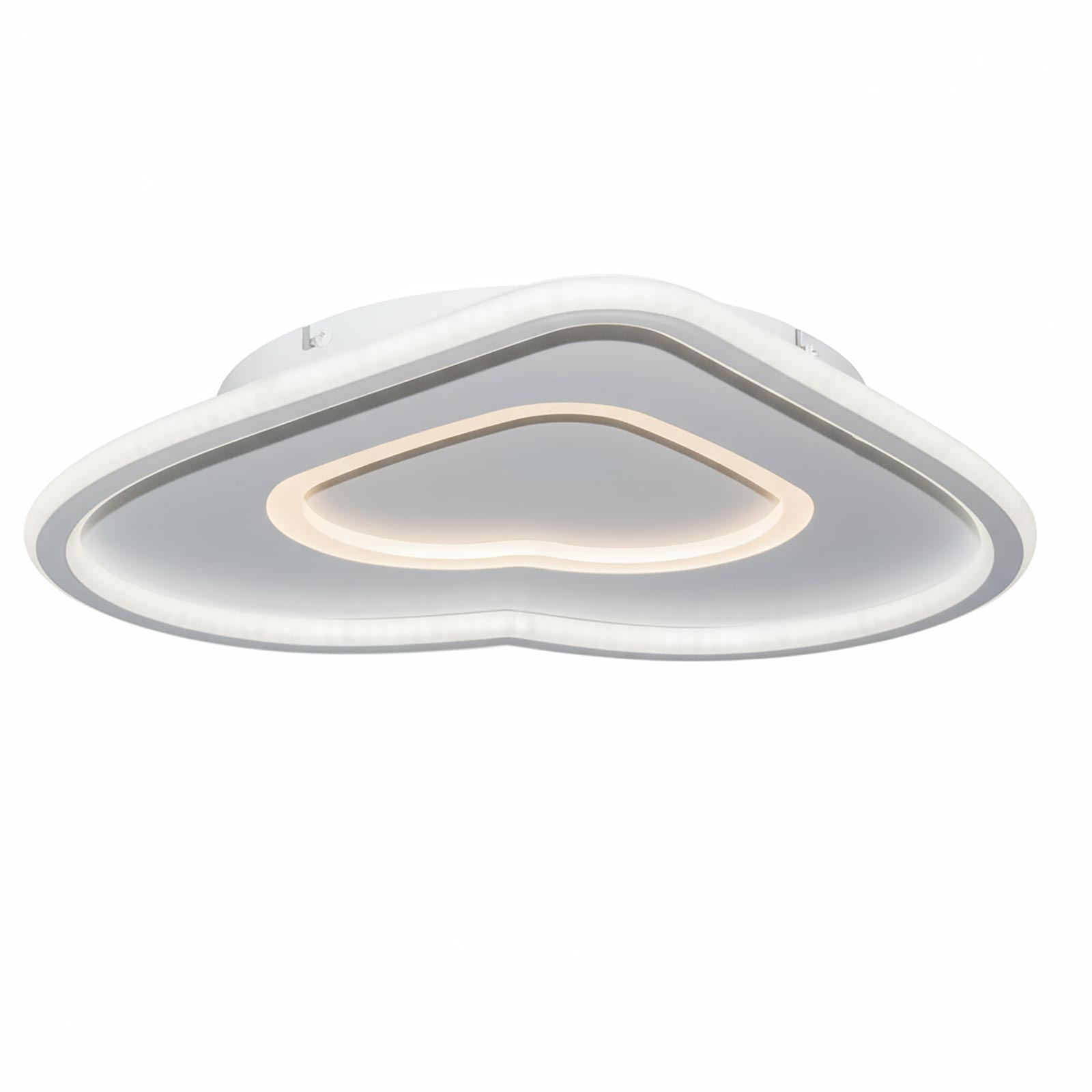Plafoniera moderna a cuore con doppio LED integrato da 54W, progettata per offrire una luce versatile e uniforme in ogni ambiente domestico. Realizzata in alluminio bianco con diffusori in PVC e acrilico, garantisce un’illuminazione omogenea senza abbagliare, ideale per camerette, camere da letto, cucine o soggiorni dal design contemporaneo.