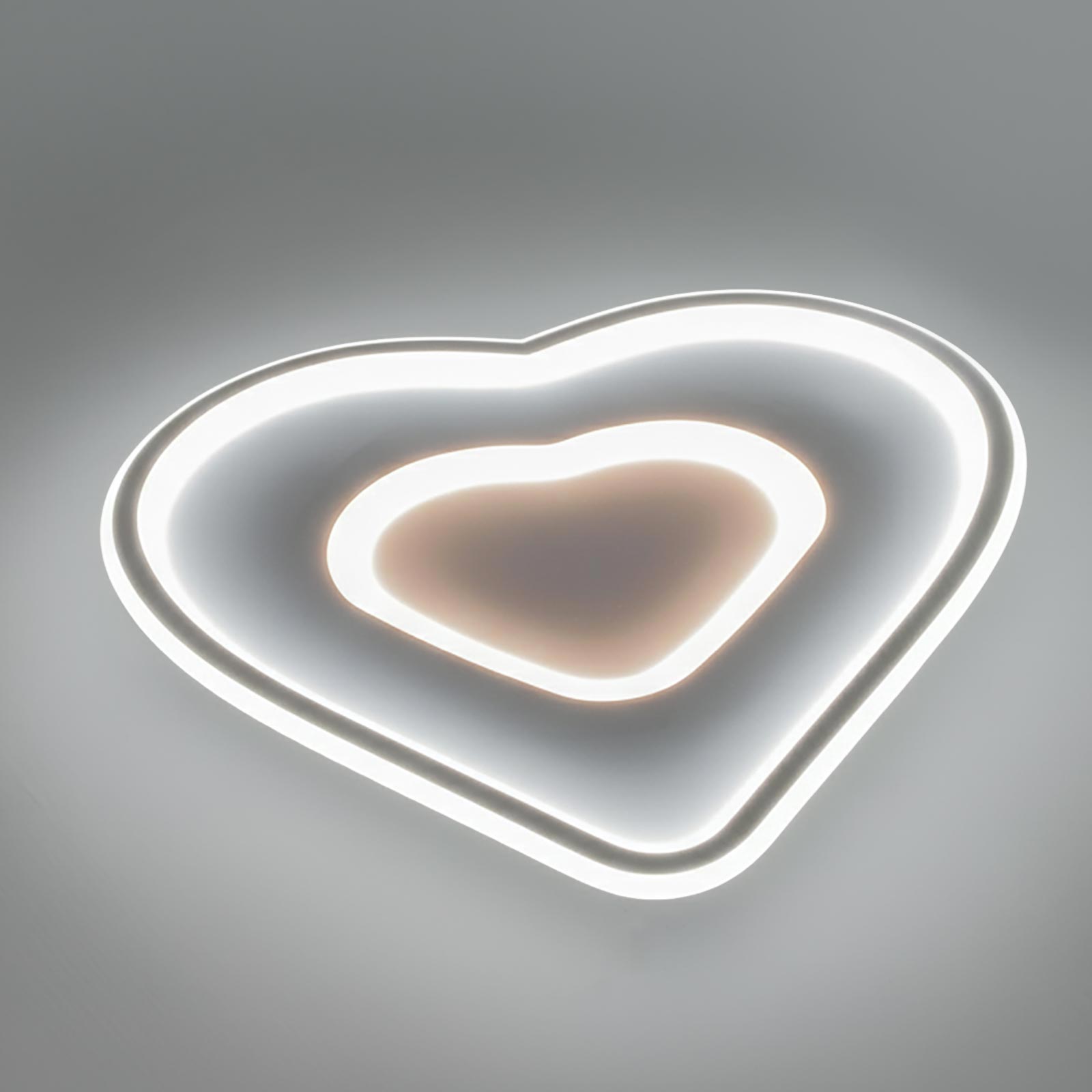 Plafoniera moderna a cuore con doppio LED integrato da 54W, progettata per offrire una luce versatile e uniforme in ogni ambiente domestico. Realizzata in alluminio bianco con diffusori in PVC e acrilico, garantisce un’illuminazione omogenea senza abbagliare, ideale per camerette, camere da letto, cucine o soggiorni dal design contemporaneo.