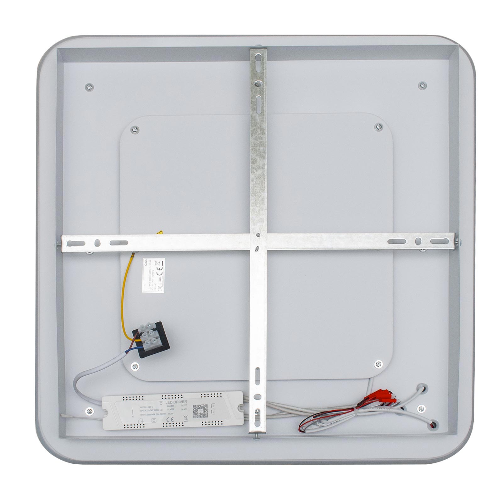 Dimensioni della plafoniera: 500mm x 470mm x 60mm (Altezza) - Dimensioni della base di fissaggio: 440mm x 440mm x 40mm.