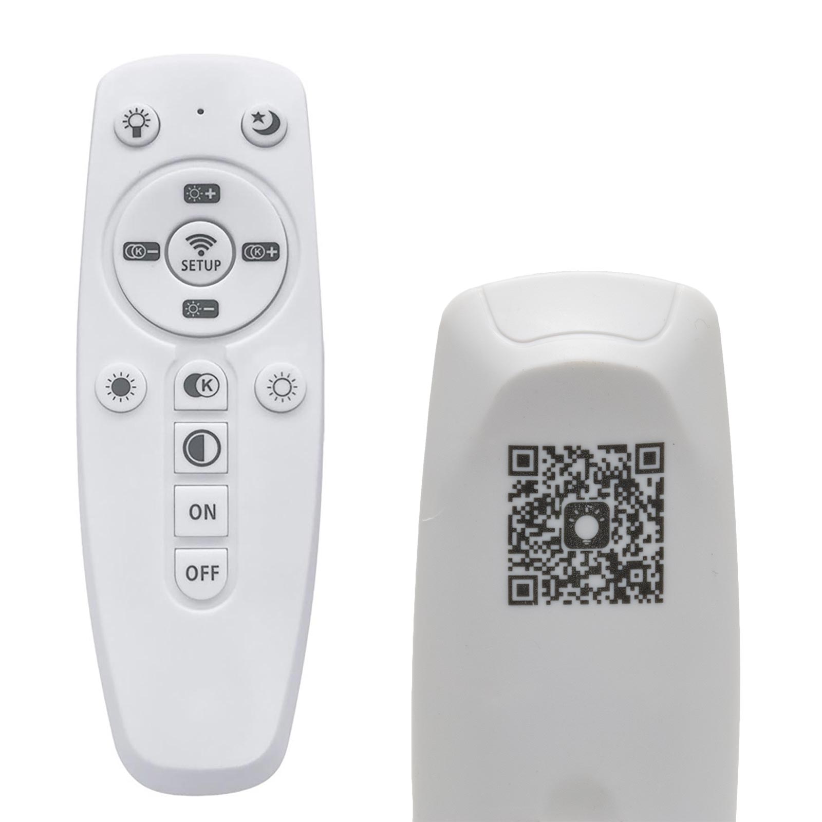 [ ASSOCIAZIONE DEL TELECOMANDO ]: per sincronizzare il telecomando con la plafoniera bisogna accenderla e premere subito il tasto "SETUP" con il simbolo del WiFi presente al centro del telecomando, quando la plafoniera lampeggia vuol dire che è stata correttamente associata.