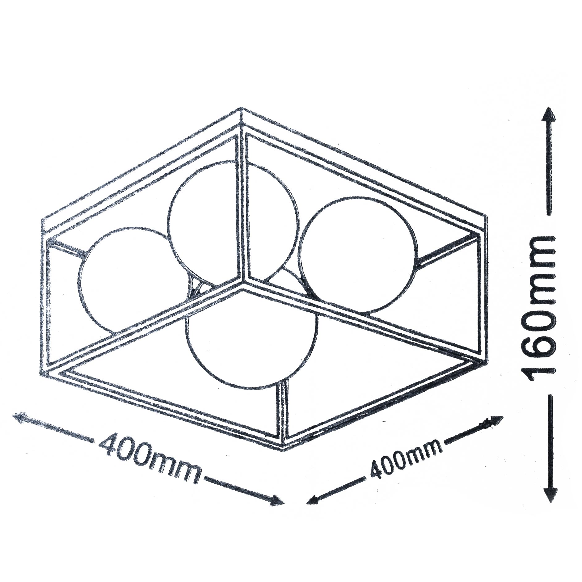 Plafoniera minimal composta da una struttura in alluminio con 4 luci globo con attacc G9 ideale per l'illuminazione di soggiorni, camere da letto, cucine, uffici, negozi ed in tutti quei posti dove si vuole installare un prodotto dal design minimale e funzionale. Dotata di 4 diffusori in vetro a forma di sfera, questa plafoniera genera un effetto di luce particolare che illumina ed arreda allo stesso tempo.