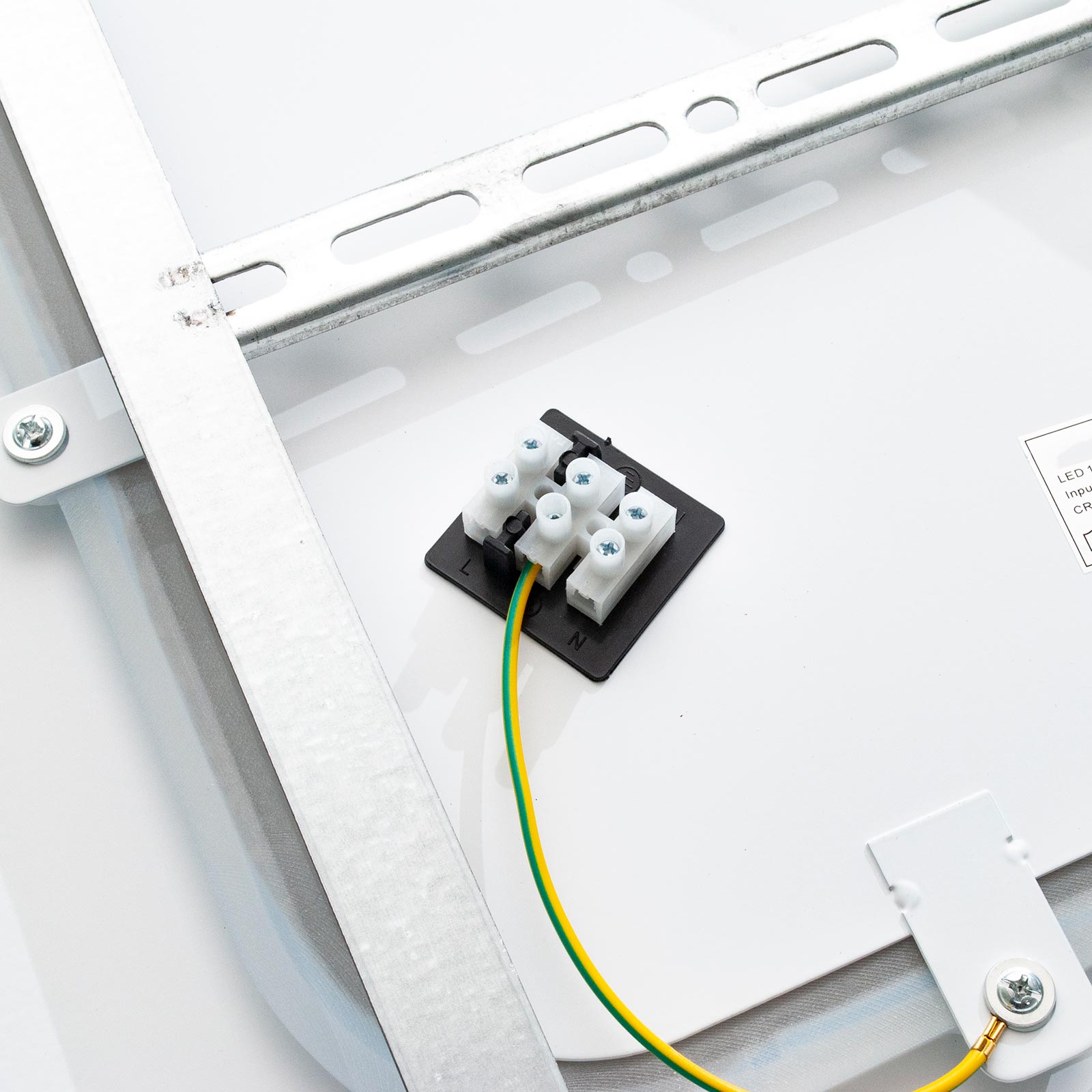 Può essere fissata a soffitto tramite la staffa in dotazione, non necessita di driver, va collegata direttamente alla rete elettrica 230V. La plafoniera ha un indice di resa cromatica maggiore di 80 RA>80.