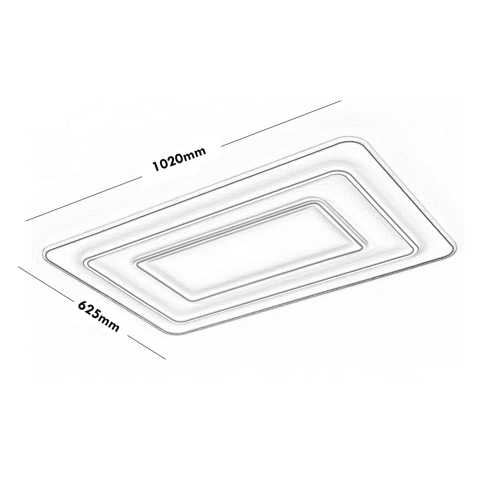 Dimensioni della plafoniera: 1020mm x 625mm - Dimensioni della base di fissaggio: 950mm x 550mm