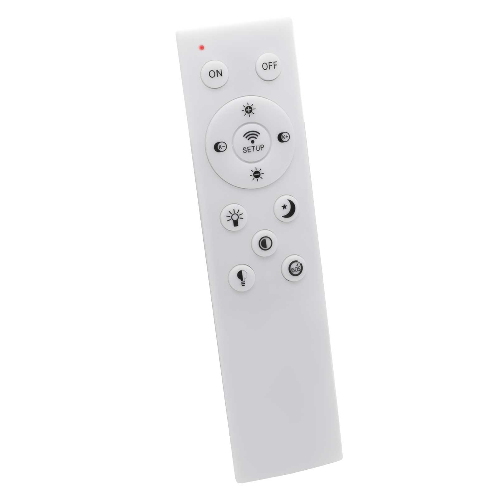 [ COME SINCRONIZZARE IL TELECOMANDO ]: Accendere la plafoniera e premere il tasto centrale del telecomando con il simbolo del WiFi con scritto "SETUP" fino a quando la plasfoniera non emette dei lampeggi per segnalare l'avvenuta sincronizzazione.