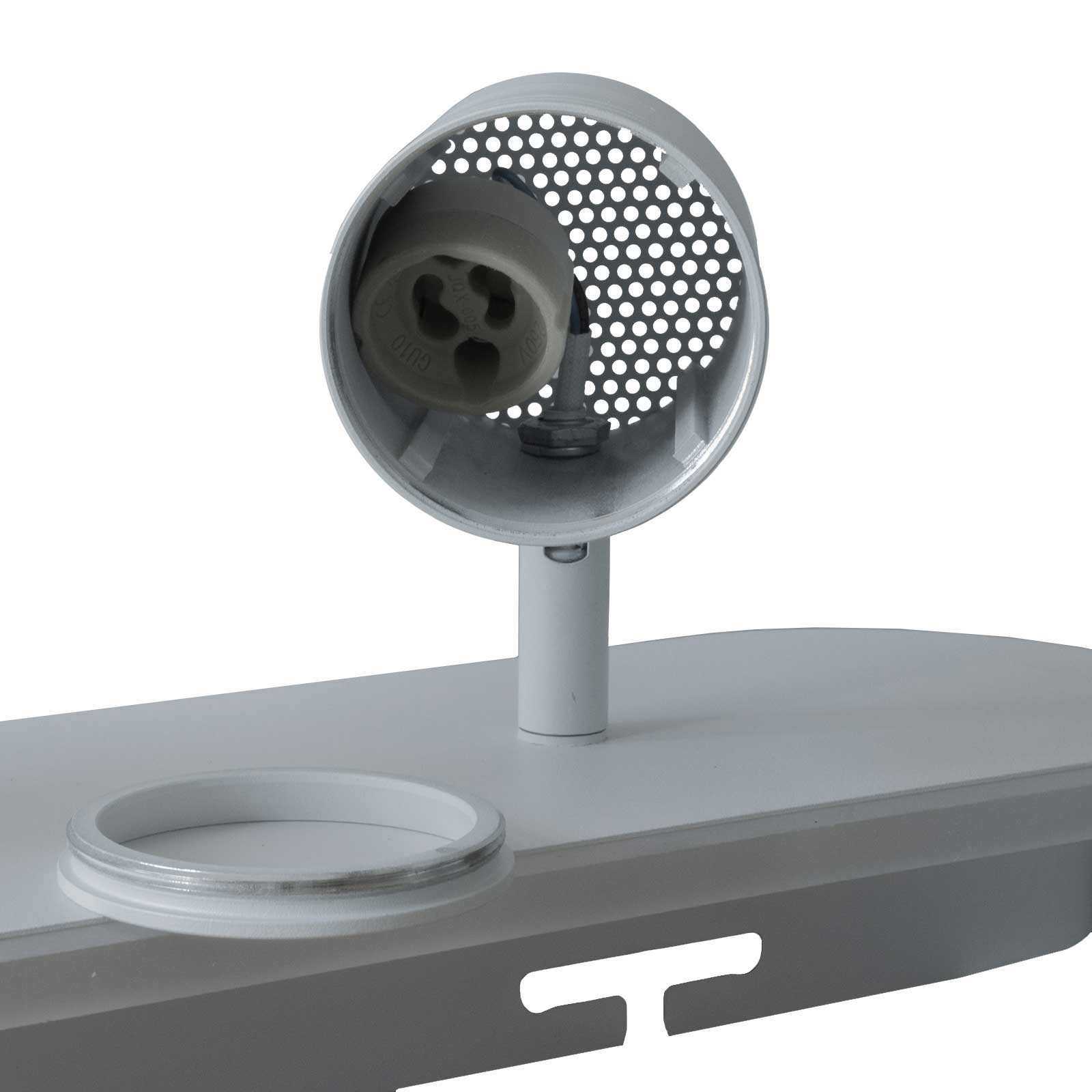 La plafoniera ha la forma ovale ed è circondata da una striscia di LED con potenza 50W disponibile in 3 temperature di luce 3000K luce calda, 4000K luce naturale e 6500K luce fredda. I LED integrati generano un'intensità luminosa di 4000 lumen adatta anche per grandi ambienti, inoltre grazie alla possibilità di inserire 2 lampade GU10 abbiamo la possibilità di aumentare l'intensità luminosa.