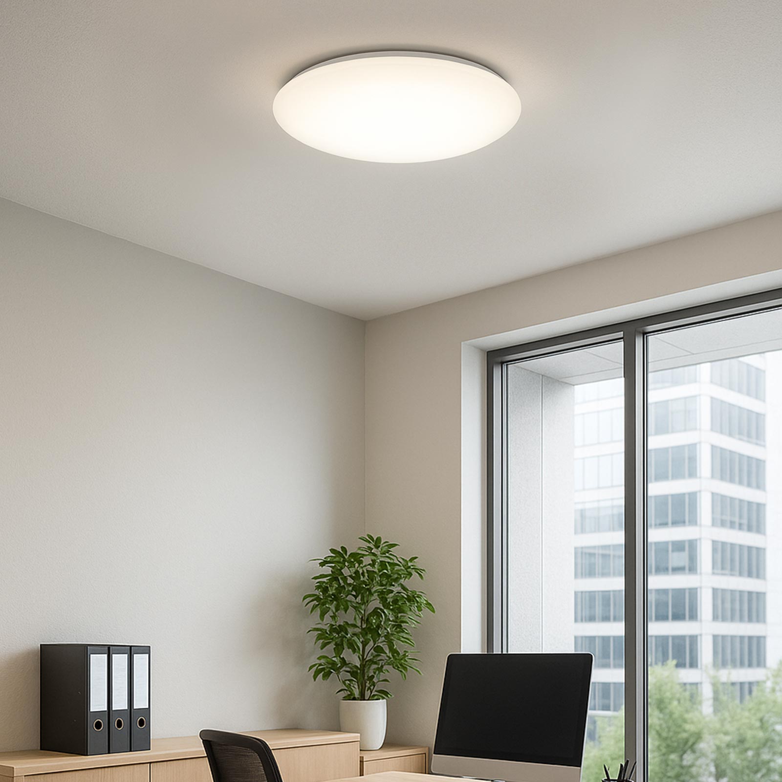 La lampada da soffitto è dotata di tecnologia LED a basso consumo energetico con selettore CCT integrato nel driver, che consente di impostare la temperatura di colore tra 3000K (luce calda), 4000K (luce neutra) e 6500K (luce fredda), offrendo massima versatilità a seconda dell’ambiente e delle preferenze.