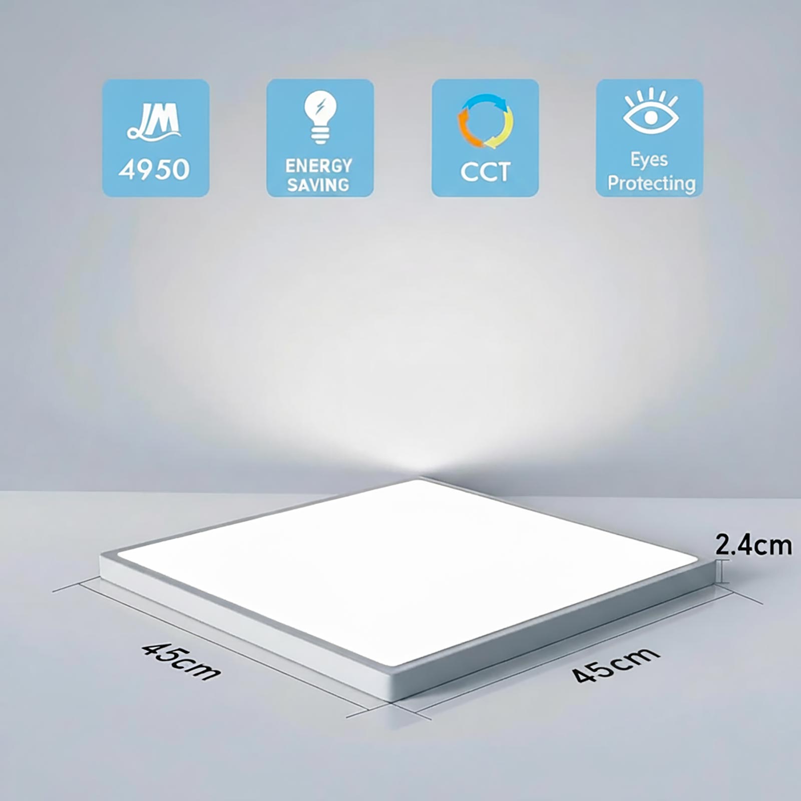 Plafoniera quadrata con LED da 45W dal design sottile e moderno con un’illuminazione efficiente e versatile. Realizzata con corpo in ABS con diffusore in policarbonato opalino, garantisce una diffusione uniforme della luce senza abbagliare, adattandosi perfettamente a soffitti e pareti di ambienti interni come bagno, cucina, soggiorno e ufficio.