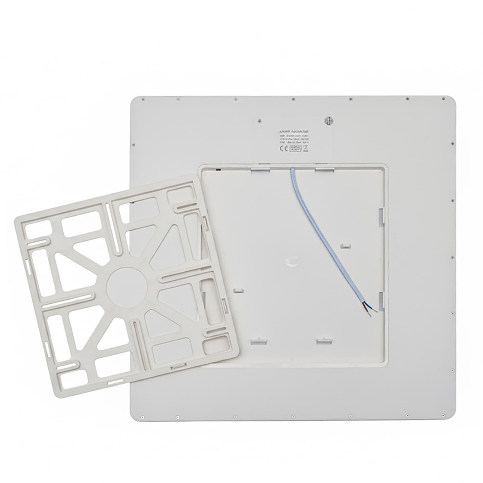 Dimensioni della plafoniera: 450mm x 450mm, Spessore 25mm. Dimensioni base di fissaggio 260mm.