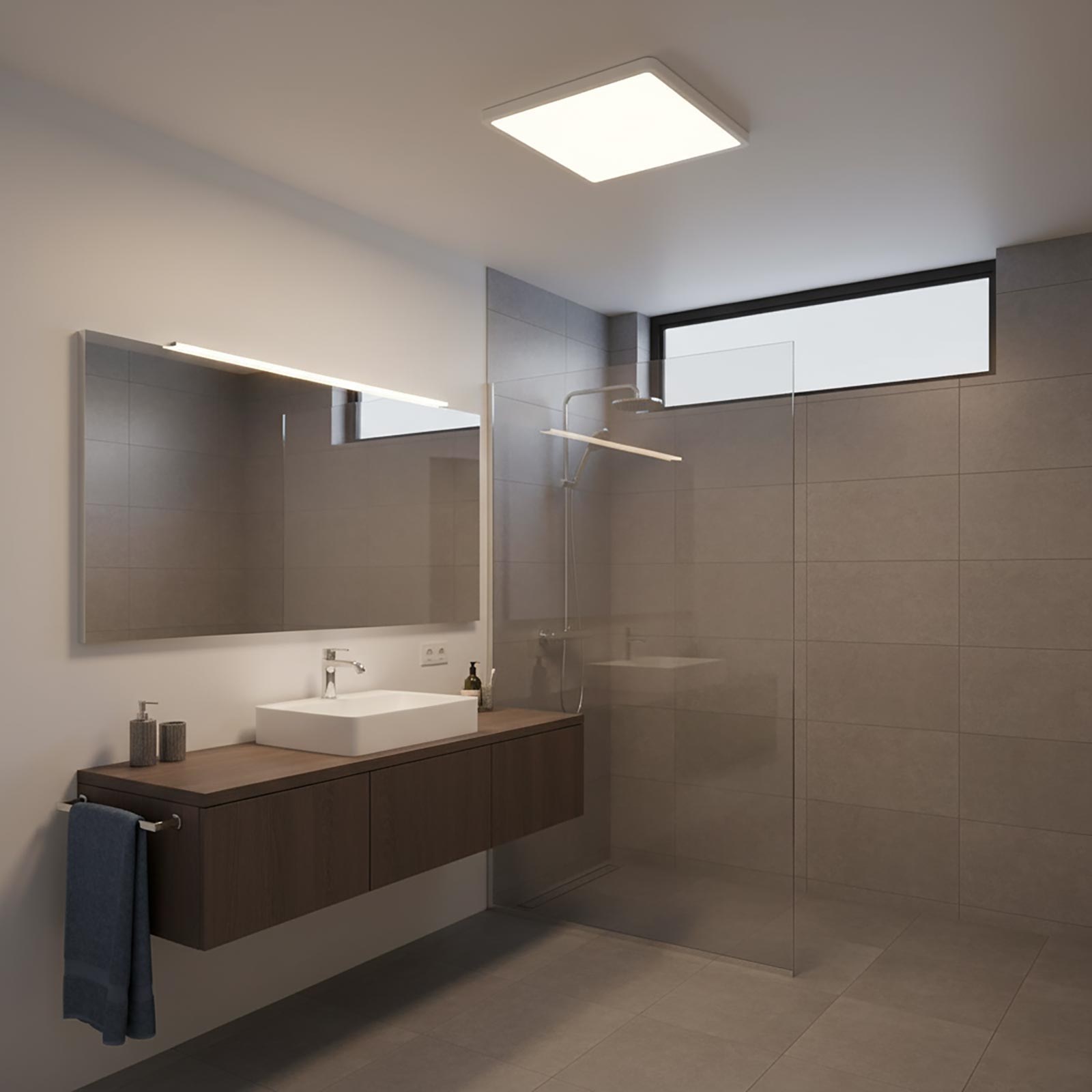 Dotata di tecnologia CCT, consente di selezionare tramite interruttore (posto sul retro) tre temperature di colore differenti (3000K luce calda, 4000K luce naturale, 6500K luce fredda), per creare l’atmosfera luminosa più adatta alle esigenze. L’emissione luminosa da 4950 lumen con un angolo di luce di 120 gradi assicura una luce intensa e ben distribuita, ideale per spazi domestici o professionali. Grado di protezione della plafoniera IP40.