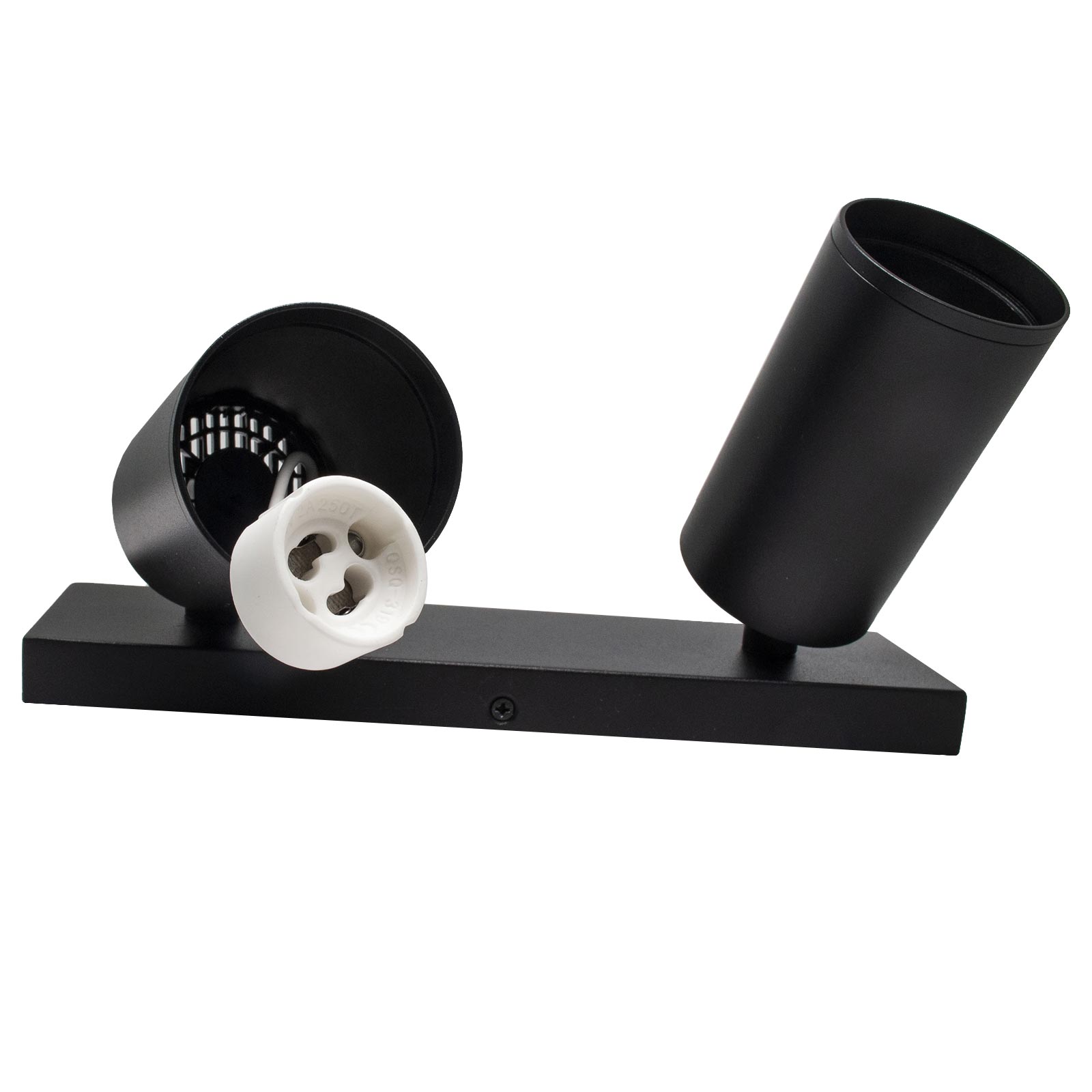 Design minimal ma di grande utilità adatto per soluzioni moderne per l'illuminazione di ambienti interni. Compatibile con la maggior parte di lampade e lampadine con attacco GU10. I portalampada interni sono in ceramica ed il retro di ongi diffusore è dotato di griglia per una maggiore dissipazione del calore. Inoltre è possibile installarla anche a pareti o muri per l'illuminazione di specchi, sale espositive, per l'illuminazione di quadri.