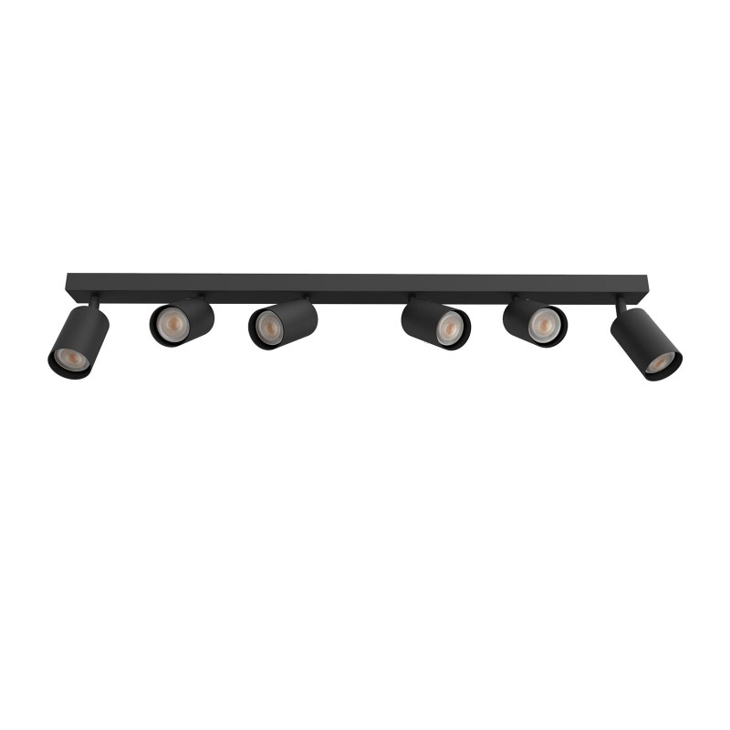 Plafoniera moderna realizzata in alluminio di forma rettangolare adatta per installazioni a soffitto o parete dotata di 6 faretti orientabili con lampada intercambiabile attacco GU10 ideale per l'illuminazione di ingressi, corridoi, cucine moderne, uffici, negozi, vetrine. Disponibile in 2 colori: bianco e nero per adattarsi meglio a tutti i tipi di arredamento.