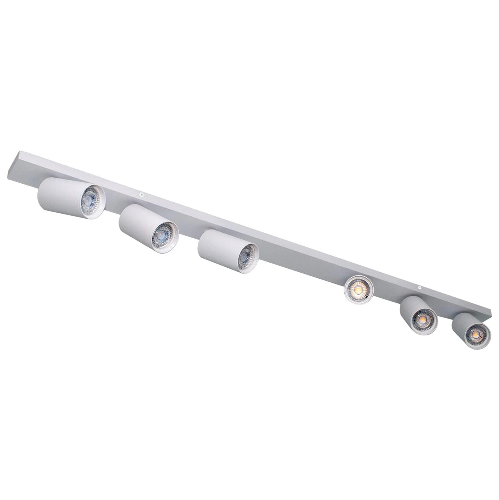 Plafoniera moderna realizzata in alluminio di forma rettangolare adatta per installazioni a soffitto o parete dotata di 6 faretti orientabili con lampada intercambiabile attacco GU10 ideale per l'illuminazione di ingressi, corridoi, cucine moderne, uffici, negozi, vetrine. Disponibile in 2 colori: bianco e nero per adattarsi meglio a tutti i tipi di arredamento.