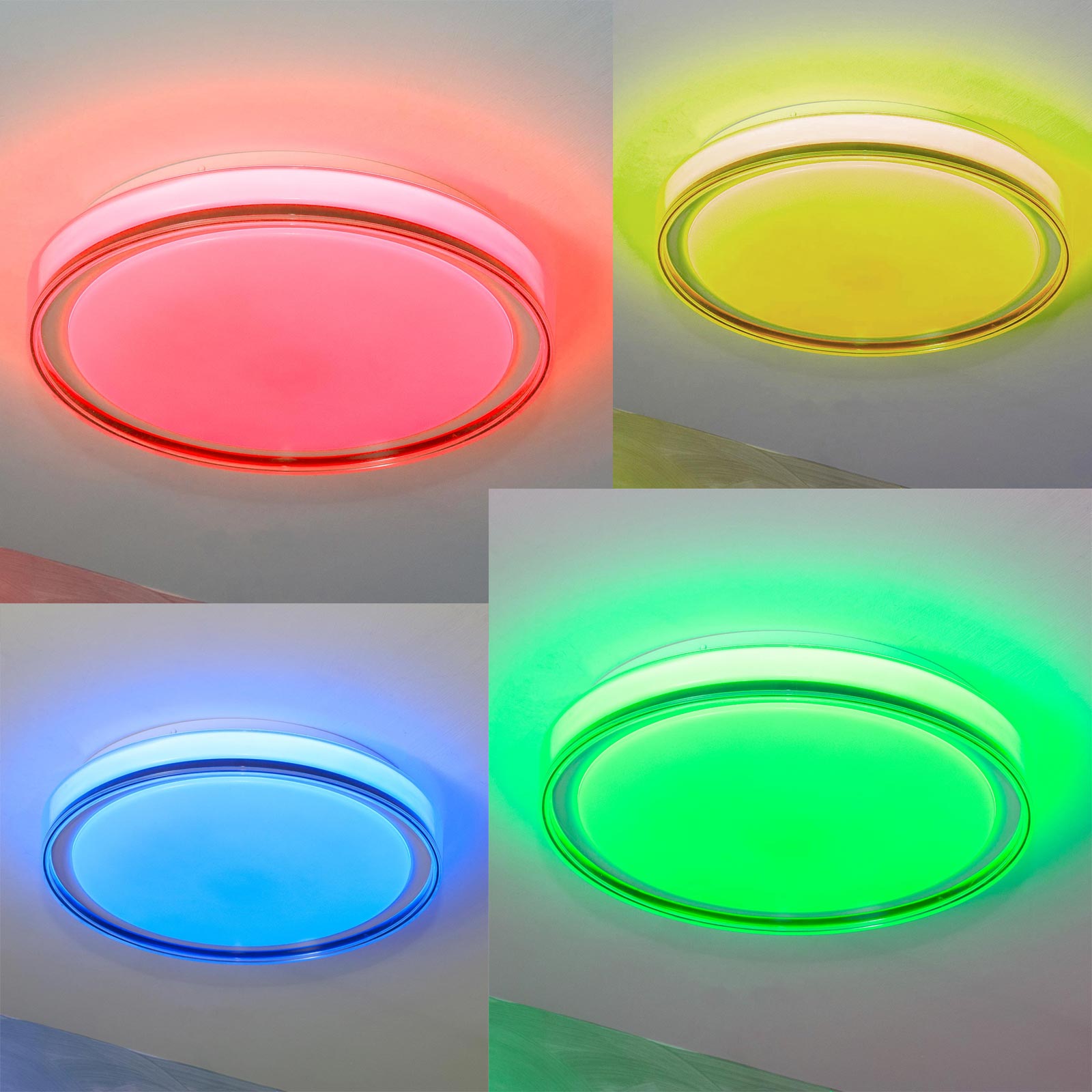 Dotata di tecnologia LED RGB + CCT viene fornita completa di telecomando per gestire tutte le funzioni. I LED integrati sono ad alta efficienza energetica con potenza 36W, ideale anche per creare fantastici effetti di luce colorata in locali commerciali, bar, pub, ristoranti, pizzerie. Grazie a questa plafoniera possiamo impostare un colore di luce preferito oppure impostare un effetto luminoso scegliendo quello più indicato tra gli effetti pre impostati. Possibilità di installarla sia a soffitto che a parete.