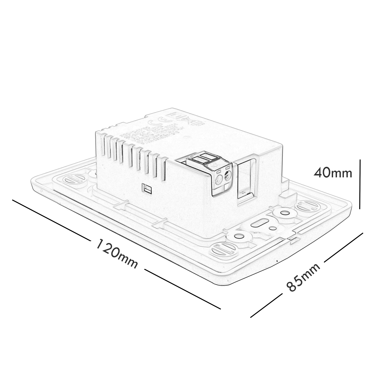 Dimensioni del faretto completo di mascherina: 120mm x 85mm x 40mm