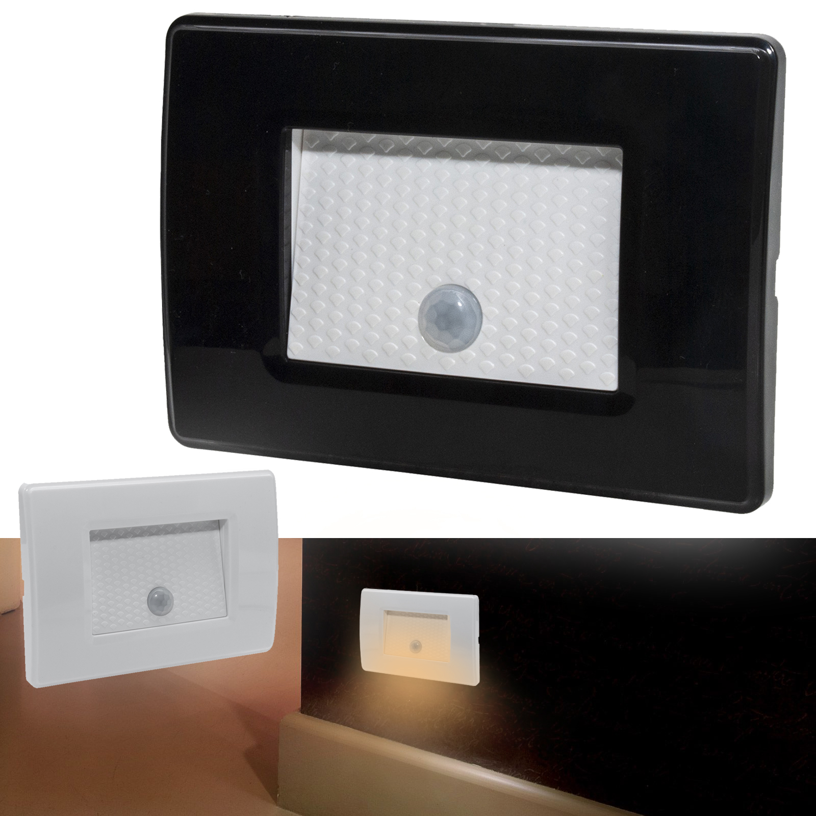 Faretto segnapassi LED dotato di sensore crepuscolare e di movimento adatto per uso interno adatto per l'incasso a parete o muro in cassette 503 (3 posti) dotato di LED integrati per una potenza di 1.3W ideale come luce di sicurezza all'interno di garage, corridoi, ingressi, per l'illuminazione di scale, locali commerciali, uffici ed in tutti quei posti dove si vuole installare una fonte di luce con accensione automatica al passaggio. Si installa facilmente in una cassaforma 503.