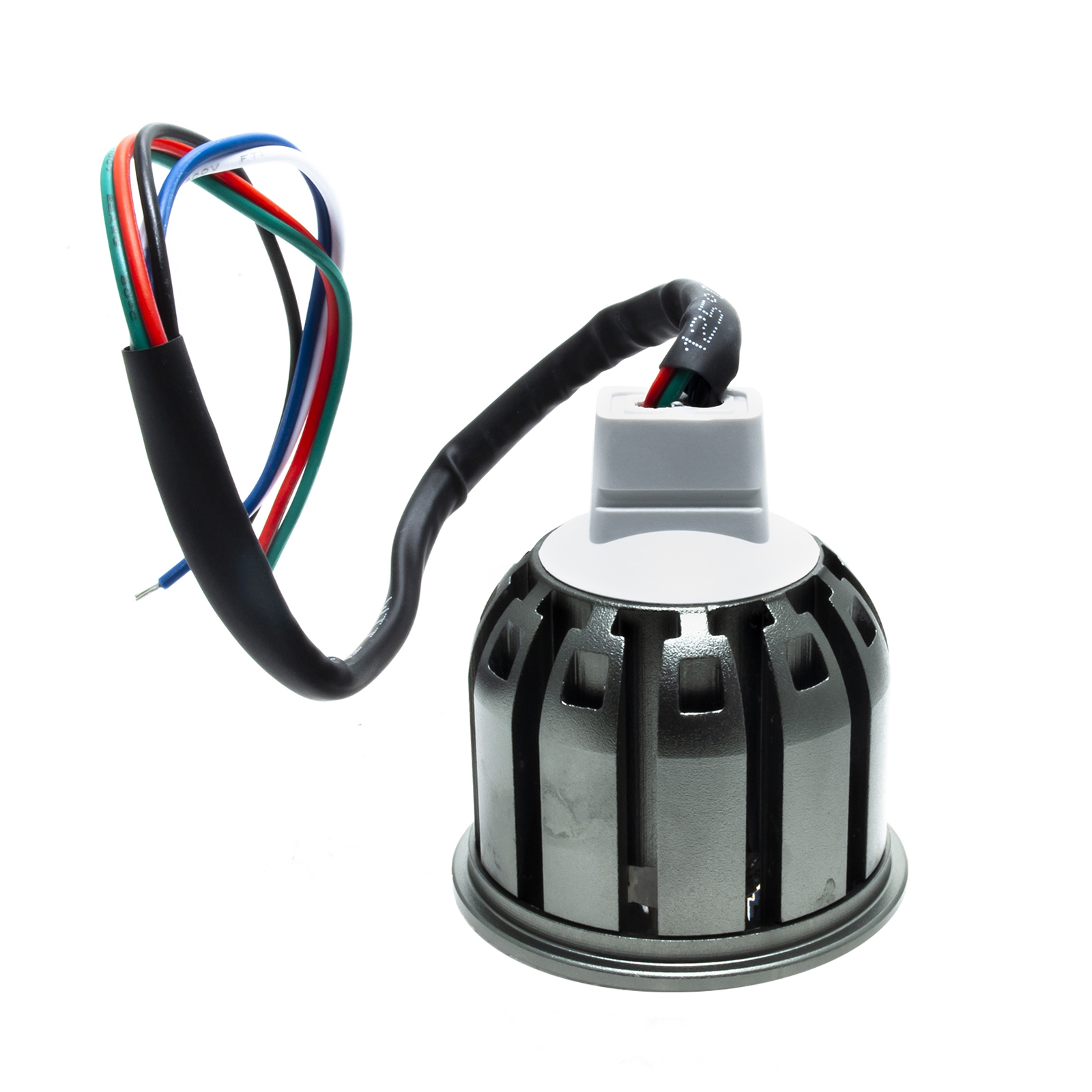 [2x focos] tiene una potencia de 6W cada uno con alimentación de 24v. Perfecto para crear soluciones RGBW RGB totalmente integradas. El diámetro de 50 mm permite insertar el foco en la mayoría de los soportes de foco existentes. La altura reducida (sólo 60 mm) permite insertar el foco incluso en presencia de falsos techos bajos. Equipado con conexión de 4 hilos (r, g, b, positivo común) para conexión a la unidad de control.