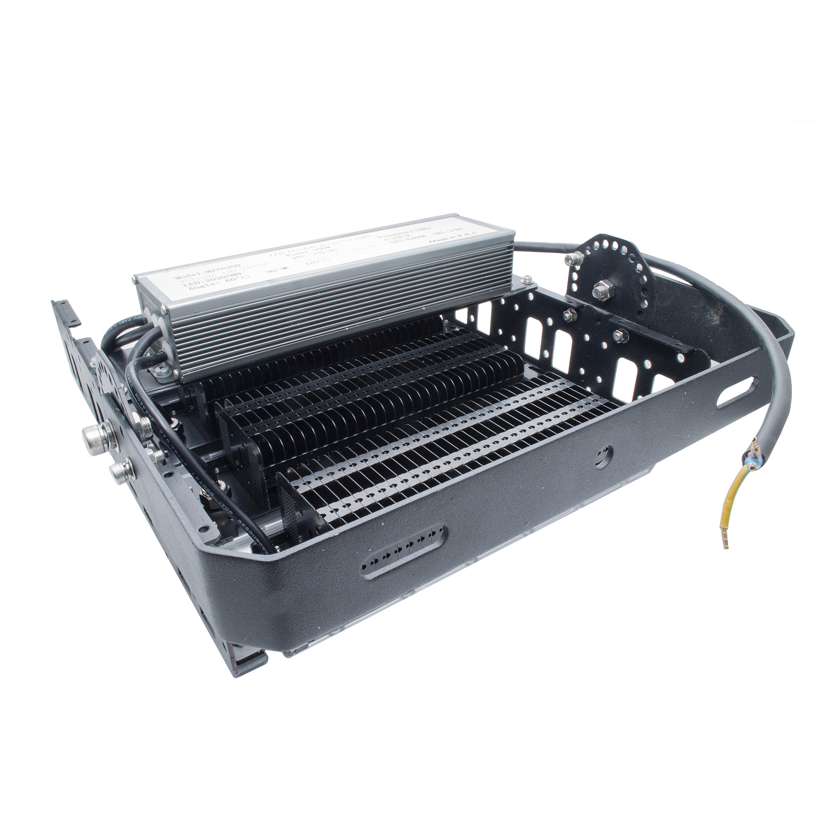 Foco de exterior de alta luminosidad con 200W de potencia fabricado en aluminio con LEDs de última generación ideal para iluminar espacios exteriores como campos de fútbol, ??pistas de tenis, exteriores de naves, plazas, parkings, túneles y en todos aquellos lugares donde se necesite una fuente de luz elevada. La estructura está realizada en aluminio y está equipada con un soporte para su fijación, además es posible inclinar el faro mediante el soporte para dirigir mejor la luz.