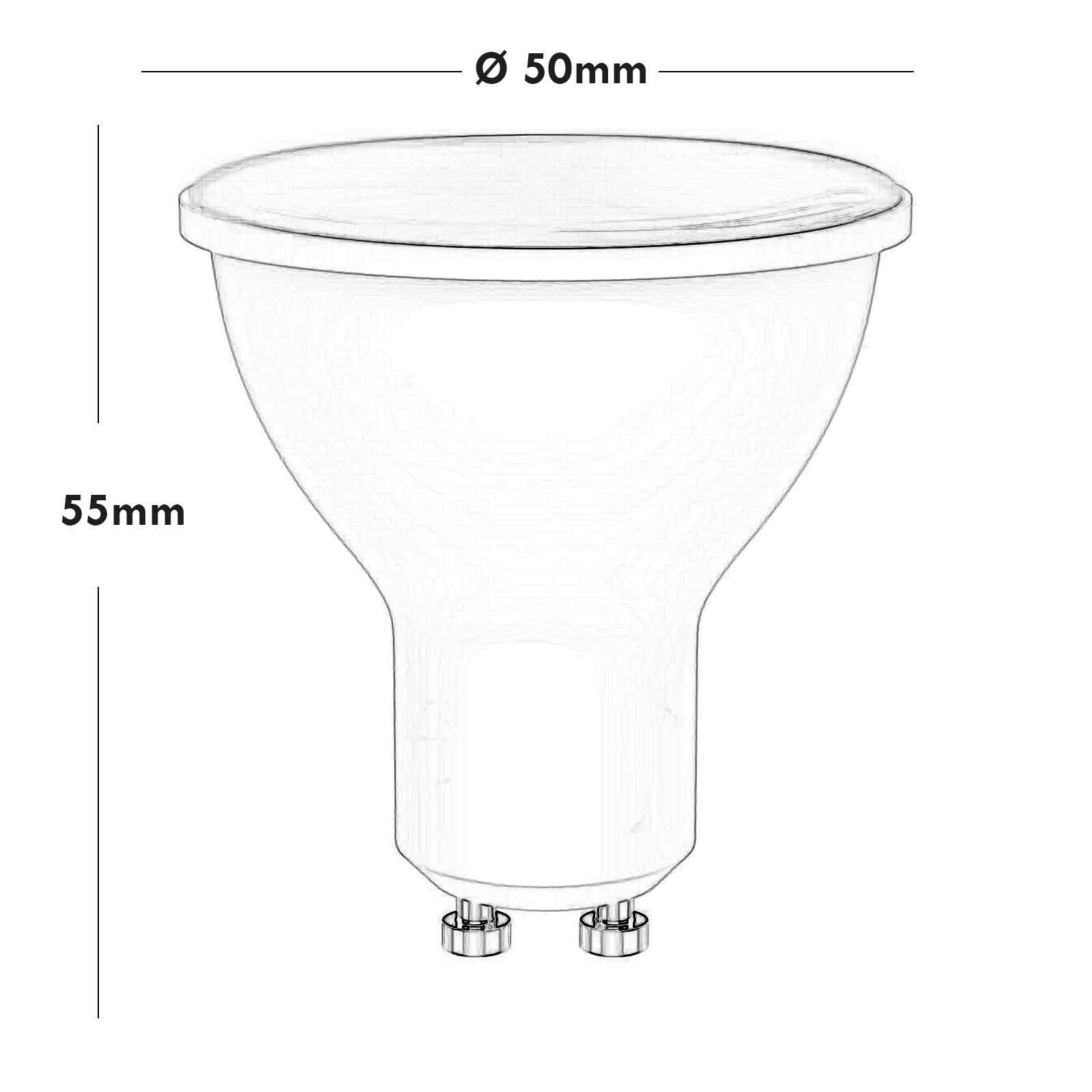Dimensioni del faretto: Ø 50mm x 55mm