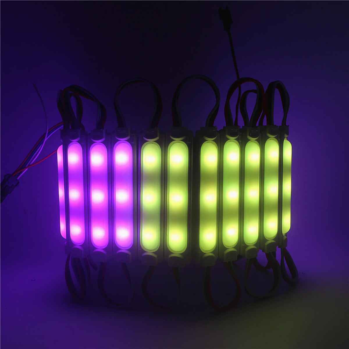 Modulo LED RGB digitale completo di centralina e telecomando per gestire tutti gli effetti ideale come retroilluminazione di tabelle, tabelloni, insegne pubblicitarie, insegne di negozi, tabelloni pubblicitari, all'interno di vetrine. Il modulo è composto da 20 LED da 1W con potenza totale di 20W ed è dotato di adesivo per un facile il fissaggio su superfici piane. Possiamo impostare qualsiasi colore oppure scegliere un effetto luminoso tra quelli già perimpostati.